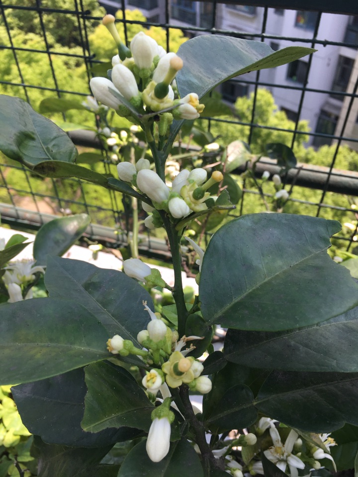 n年前买了两棵胡柚,第一年就结了一个果。以后每年都会或多或少结几个果,就是酸得要命,没法吃。橘黄色的果挂枝头也是一道风景,没果的时候观观叶也不错。春天小白花悄悄开放,发出淡淡的清香。芸香科柑橘类植物的叶有它的特征, 叫单身复叶,第三图很明显。前年结果不少,去年就成了小年一个都不结,只有枝上的小骨朵,第一图。今年花多,估计能结不少呢!