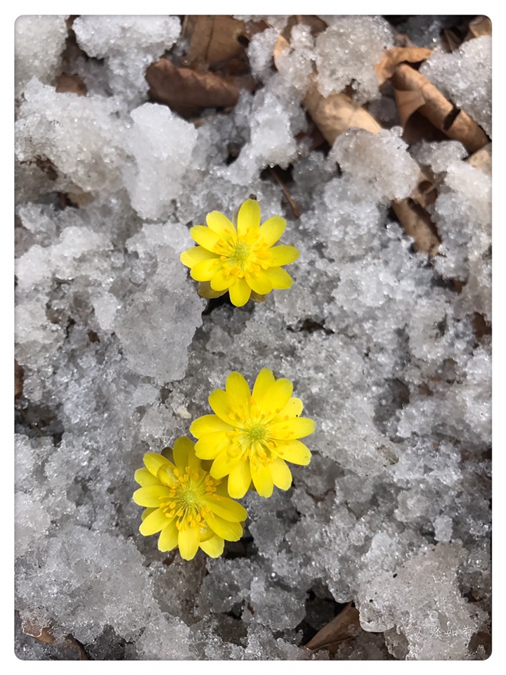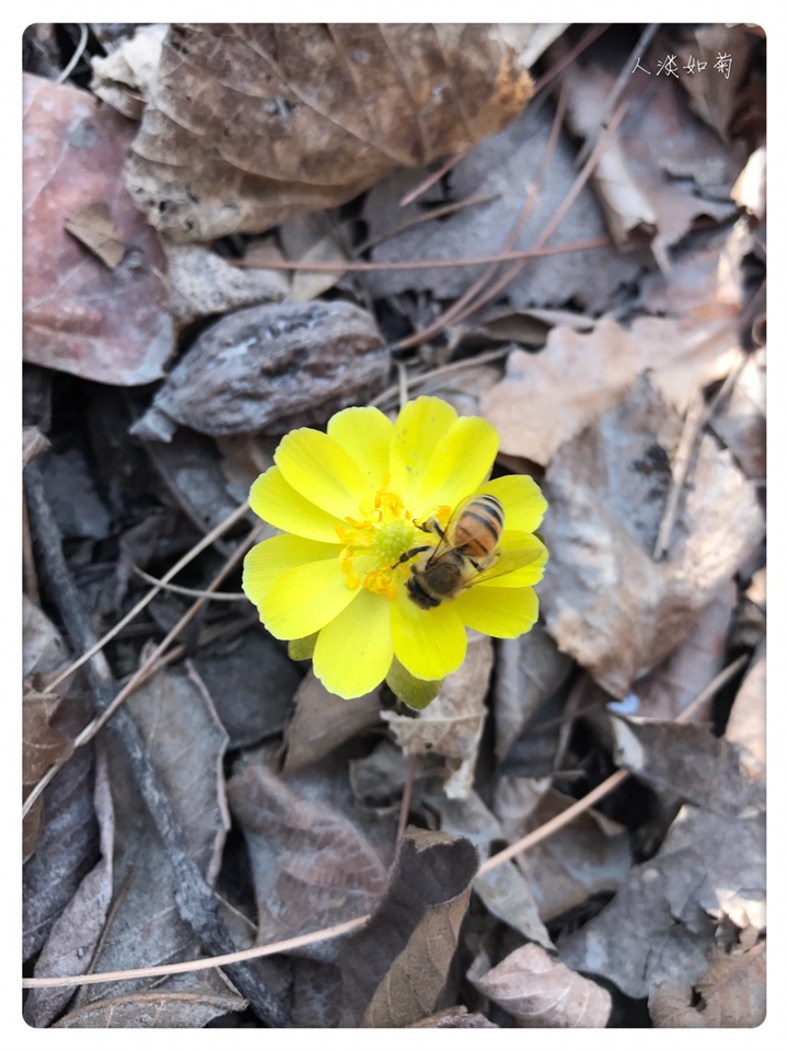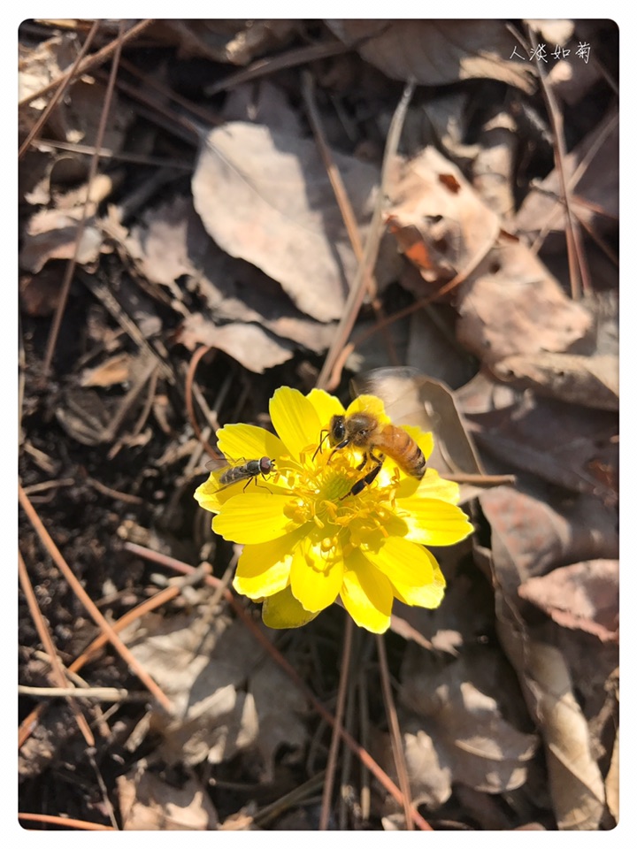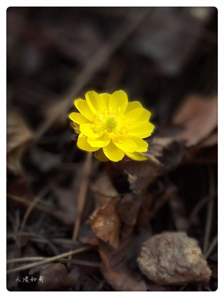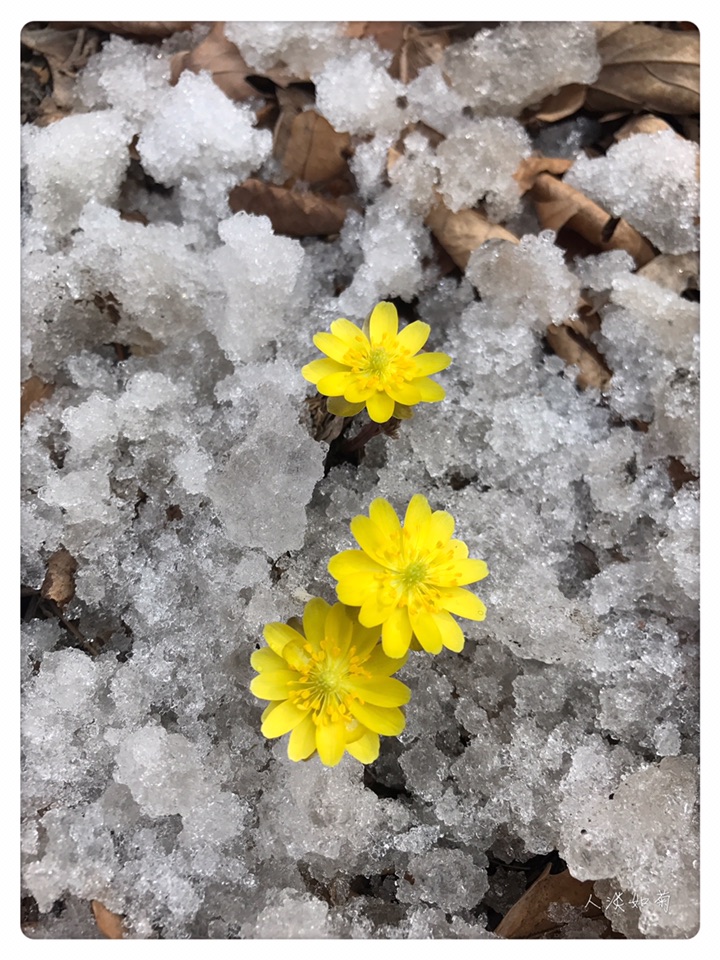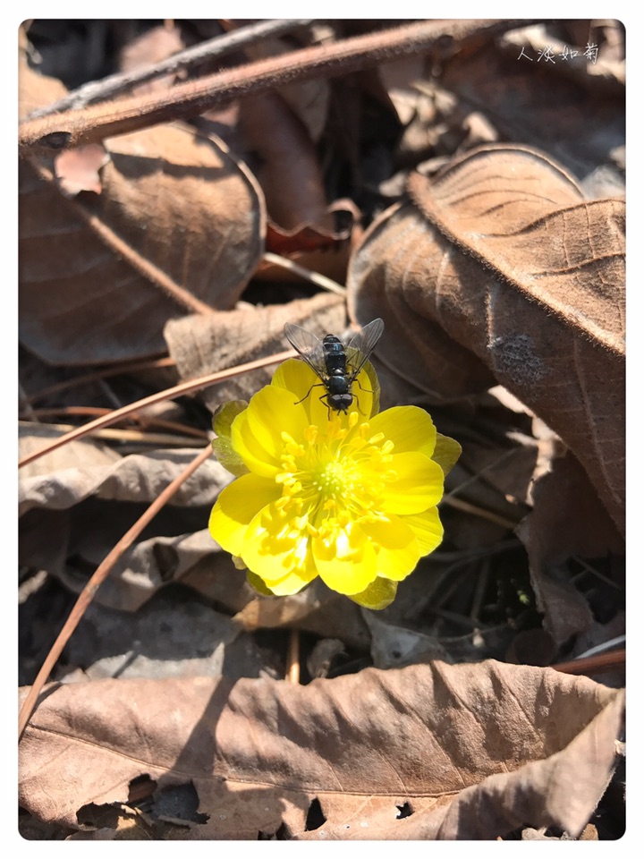 在千山落叶覆盖冰冻的山坡上,在草木依旧枯黄的季节里,一朵朵金黄色的侧金盏花向着明媚的阳光,尽情地绽放在东北这早春时节,不畏严寒,不与百花同放,在冰雪中凸显其圣洁和顽强。