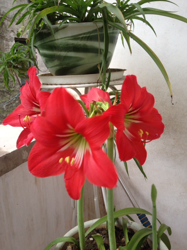 啊啊啊,这几朵朱顶红,它们的微笑是多么灿烂,像一个个小姑娘天真的笑脸。