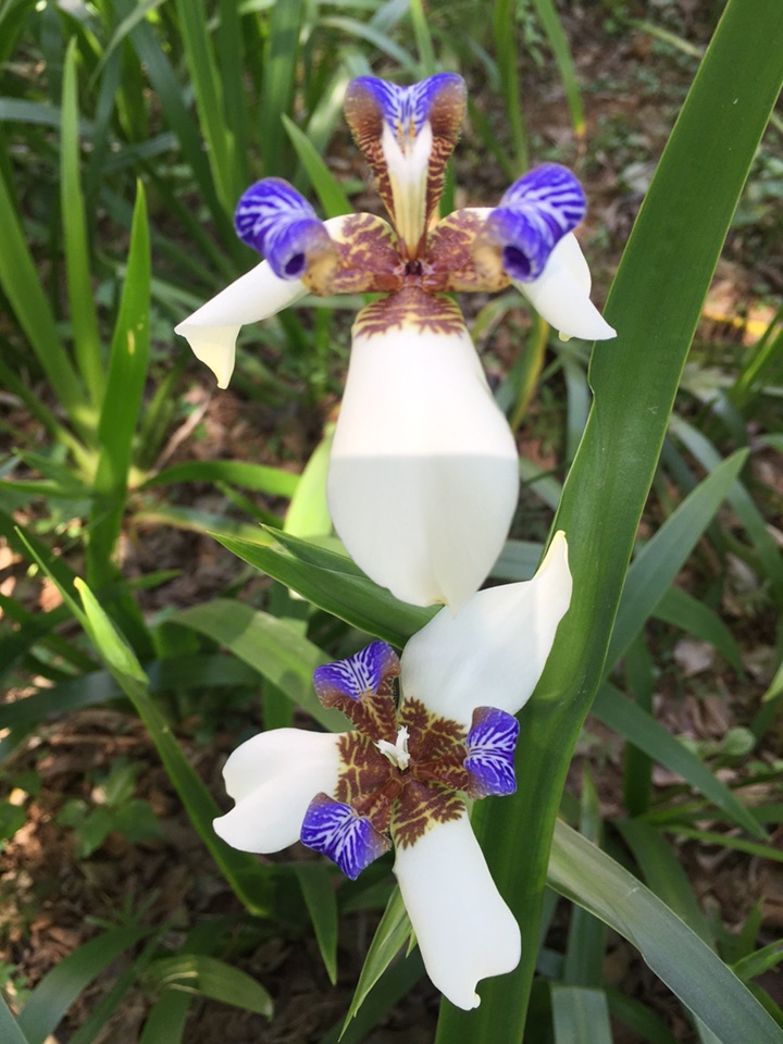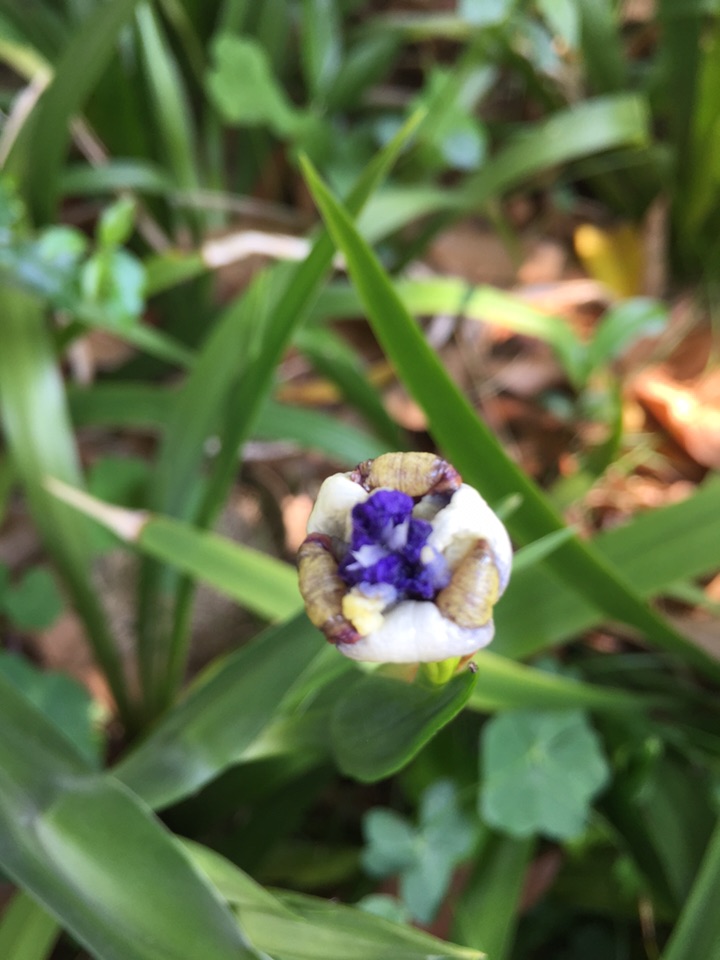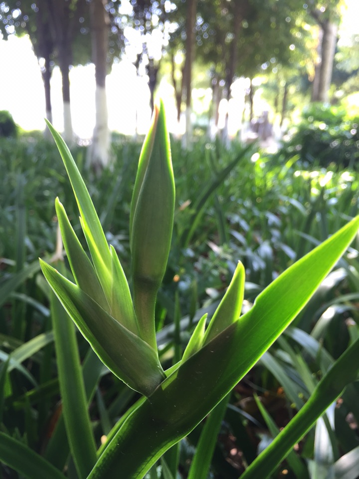 巴西鸢尾的繁殖方式也很特别,当 花鞘内的花开完后,会长出小苗,小苗越长越大最后至土表,发根成苗,而小苗隔年就有开花能力。(20180327)