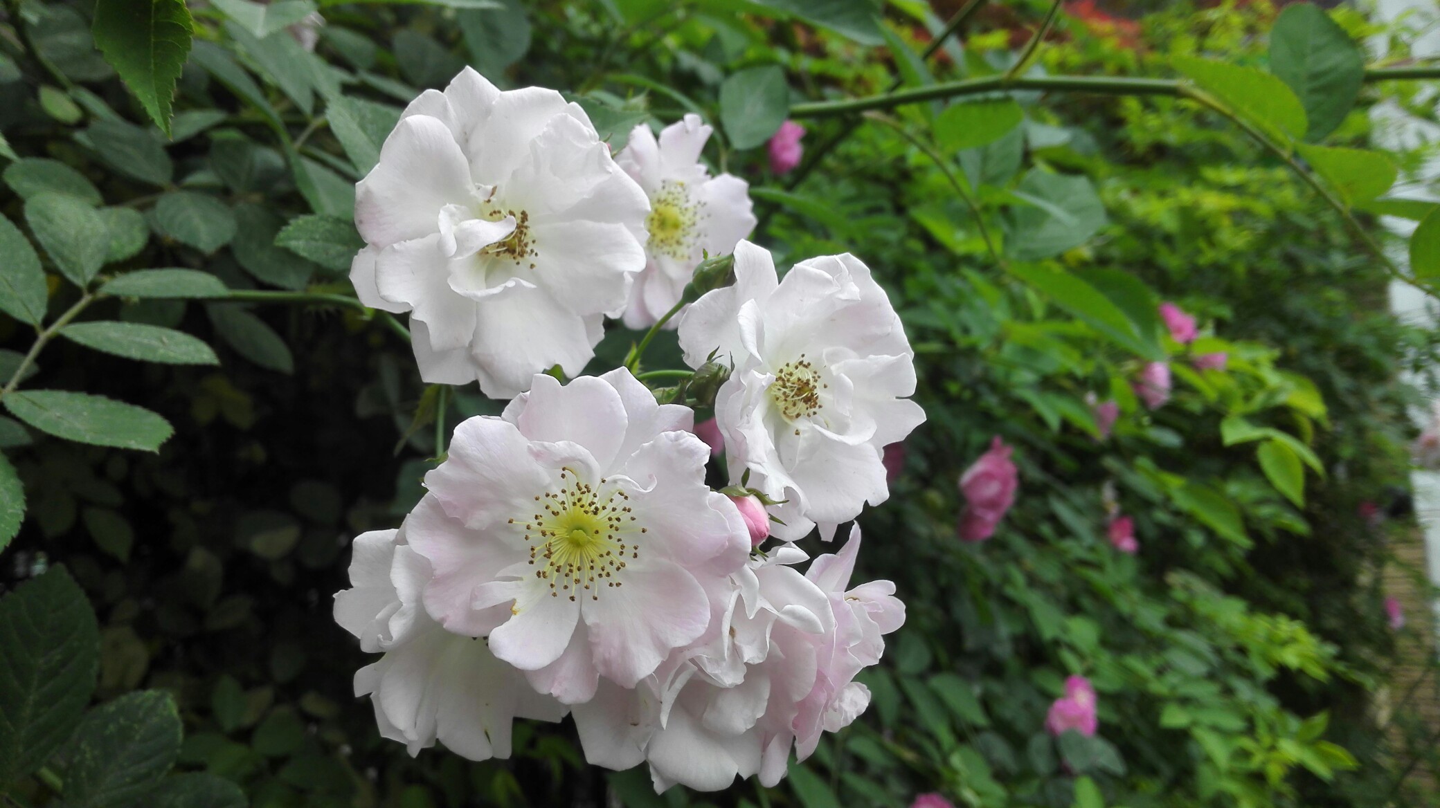 蔷薇是攀援灌木,藤蔓,花斜向;