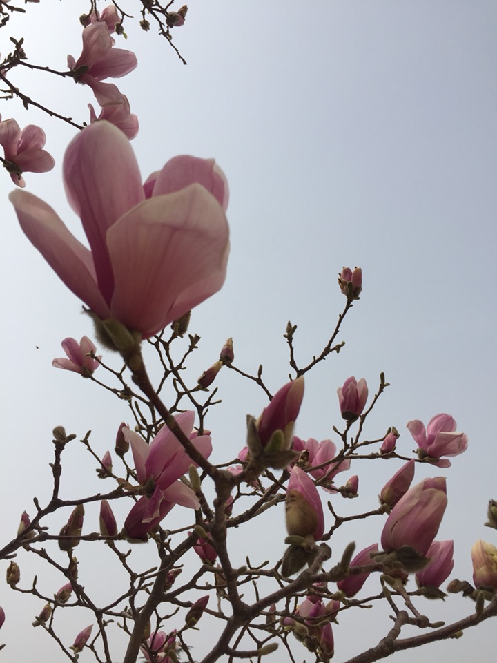 花其实好看,可是雾霾的映衬使它没有光彩。