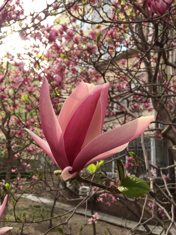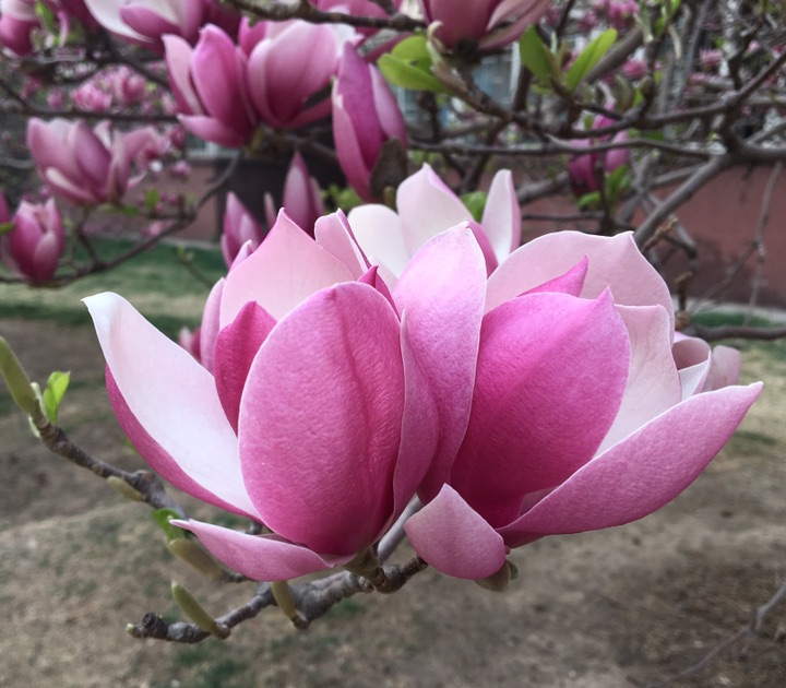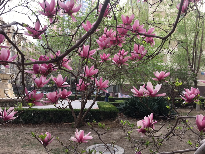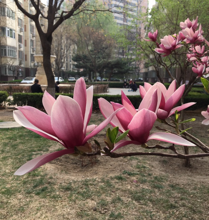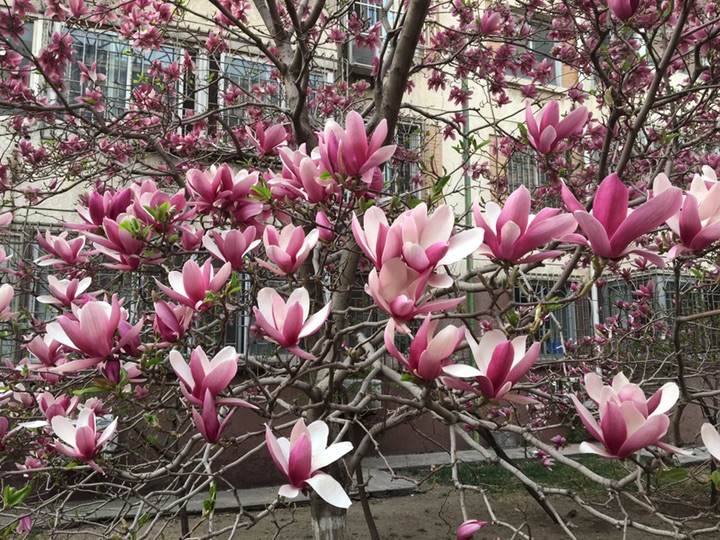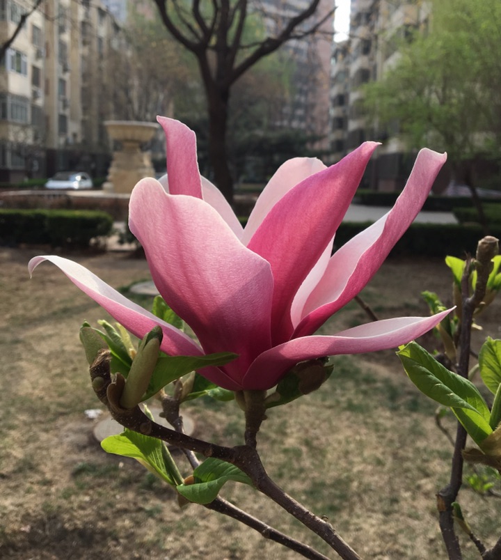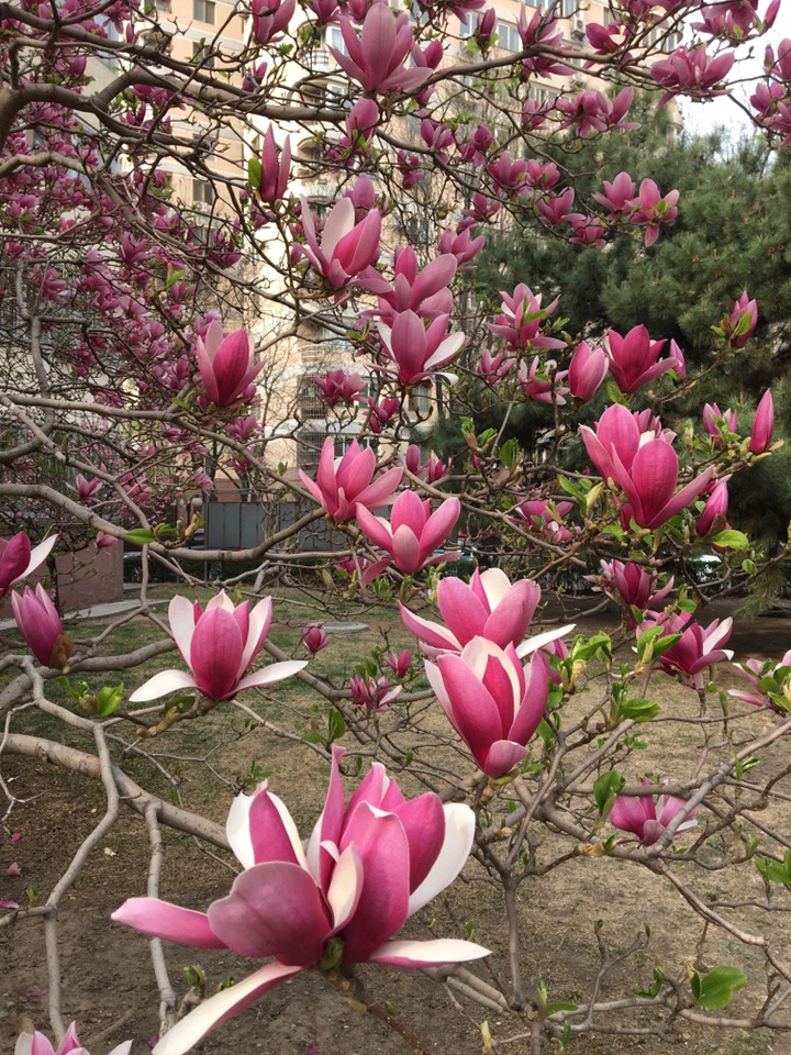 小区有几棵紫玉兰,每年都盛开,由于经常出差,我总赶不上它们最好的瞬间,今年,运气不错,终于赶上了怒放的紫玉兰。
