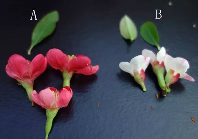 ▲西府海棠(左)和垂丝海棠(右)