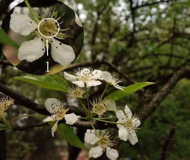 梨属典型特征是花柱离生,“梨”同“离”,便于记忆,梨的果实具有石细胞,吃过梨的人都知道梨比较脆,果肉稍硬,这就是石细胞所致。梨属还有一个突出的特征就是花药,其花药多为红色或紫色。而梨本种的花药是红色的,极易识别。