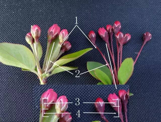 苹果属主要涉及西府海棠、垂丝海棠、山荆子、湖北海棠的区分,此处以西府海棠和垂丝海棠为例。