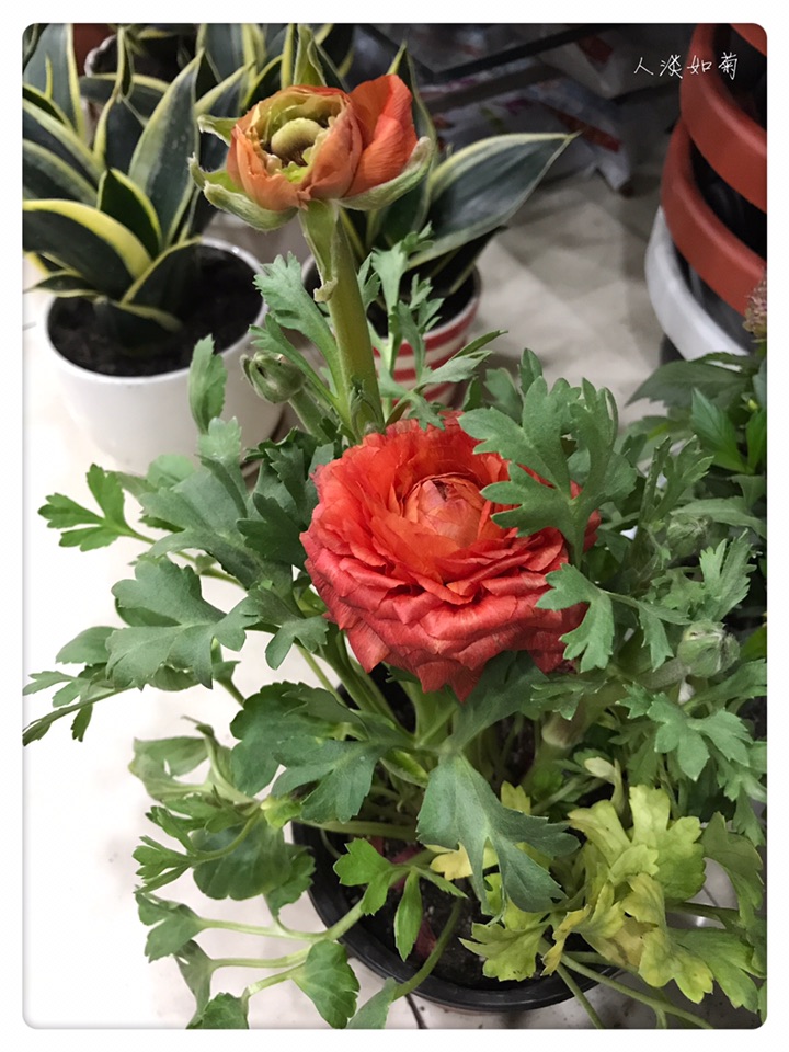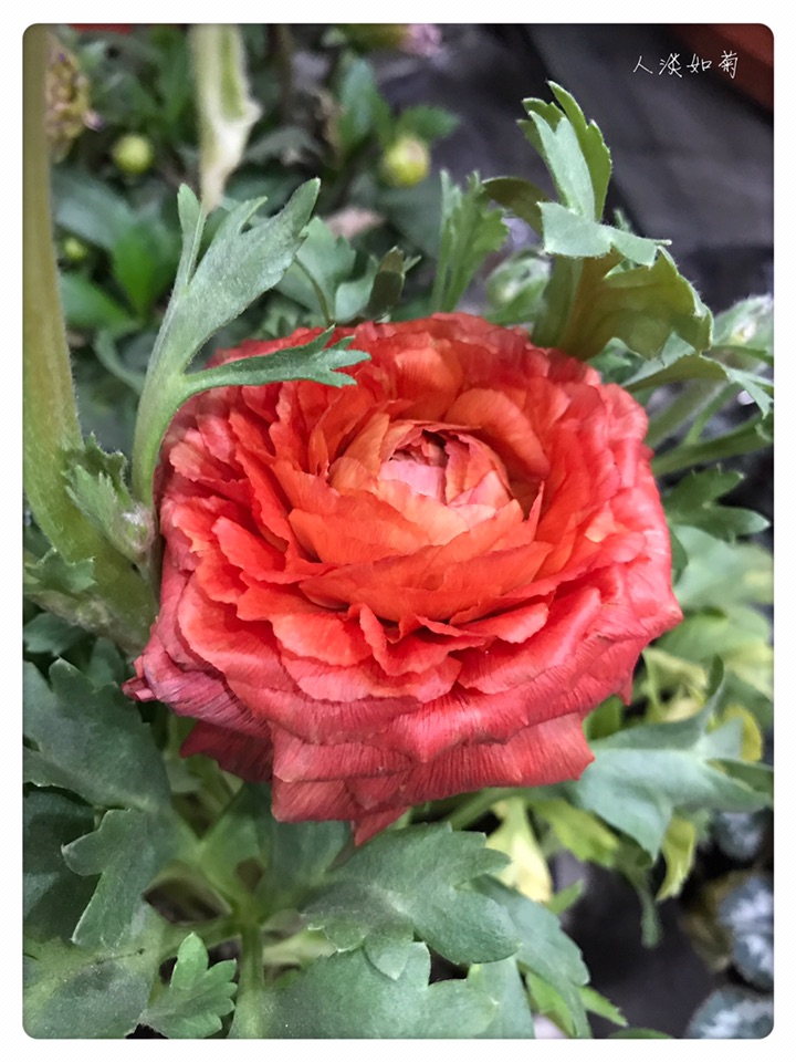 花毛茛(gèn),学名:Ranunculus asiaticus(L.)Lepech.,别称波斯毛茛、芹菜花、陆莲花,为毛茛科、花毛茛属多年生草本花卉。花色丰富,多为重瓣或半重瓣,花型似牡丹花,但较小,花直径一般为8cm~1ocm;叶似芹菜的叶,故常被称为芹菜花。