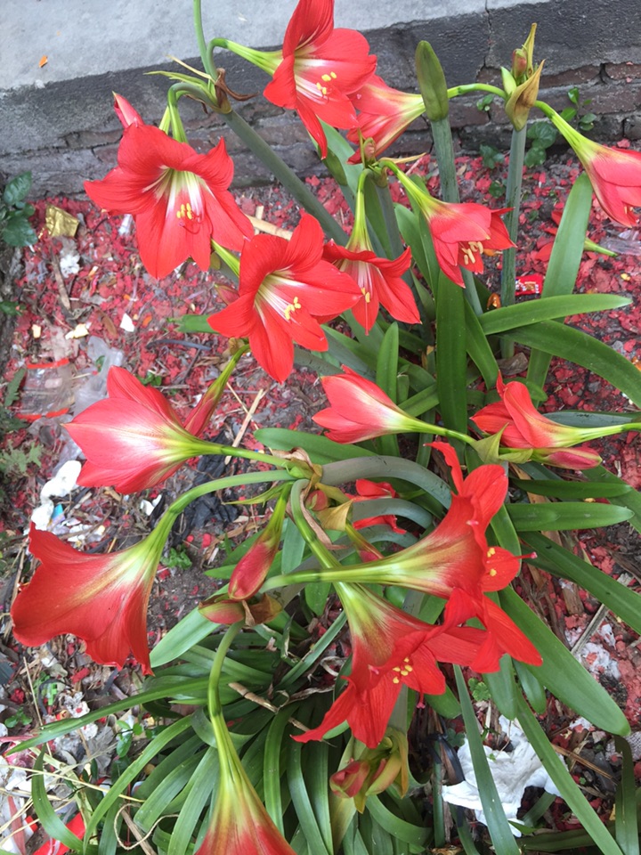 记得小时候天井里不知谁家的女人种了一株植株,平时谁也没在意,但在春天到来时它冒出了好多花箭,然后很快开出了红红的花朵,而且特别的艳俏,小小的心里也觉得它好美。因为花瓣形如喇叭,大人物都管它叫"喇叭花"。不知是什么原因,在离开老家后就没怎么看到这种花儿了。