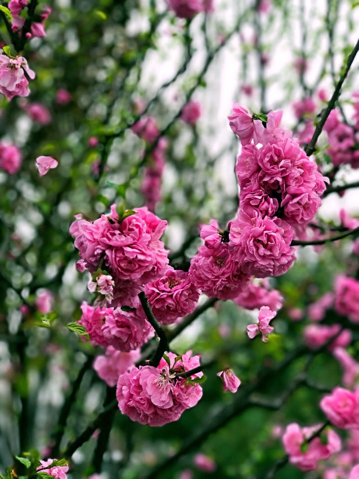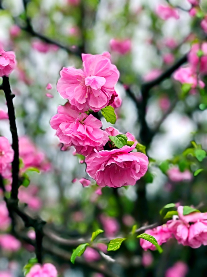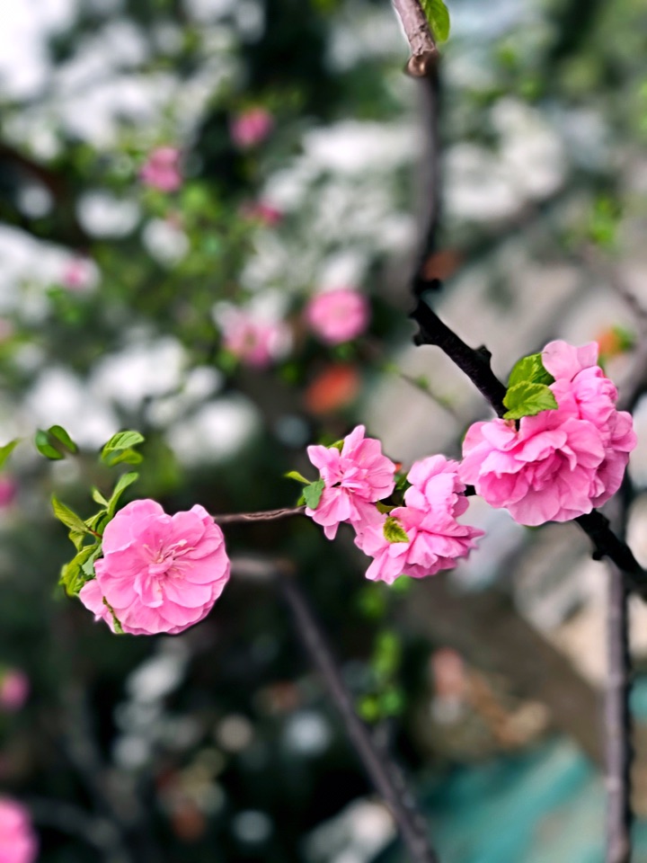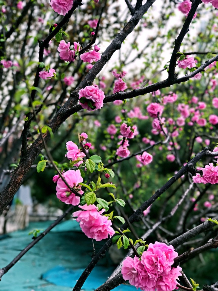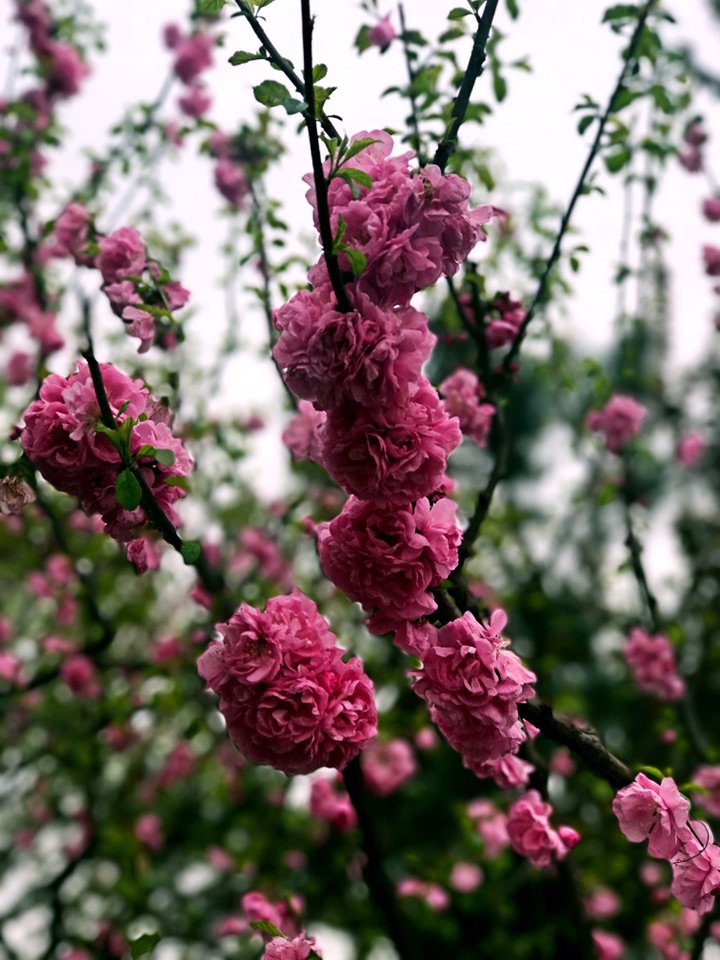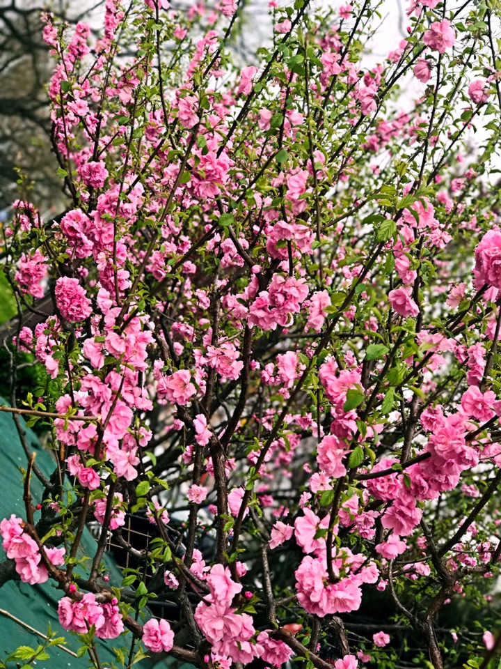 出去一趟还真没少收获,除却纪晓岚故居的一花一草,沿途的风景也是不容错过的。老远就看到红粉一片还以为是碧桃呢,临近了才发觉有点不像,在不大确定的情况下用形色一扫赫然出现:榆叶梅三字。噢!原来你就是榆叶梅啊!榆叶梅又叫榆梅、小桃红、榆叶鸾枝因其叶片像榆树叶,花朵酷似梅花而得名。为灌木稀小乔木,高2-3米;枝条开展,具多数短小枝;小枝灰色,一年生枝灰褐色,无毛或幼时微被短柔毛;冬芽短小,长2-3毫米。现在正值花期,你看这枝叶茂密,花繁色艳,团团簇簇明艳非凡,很难让人不去注意她