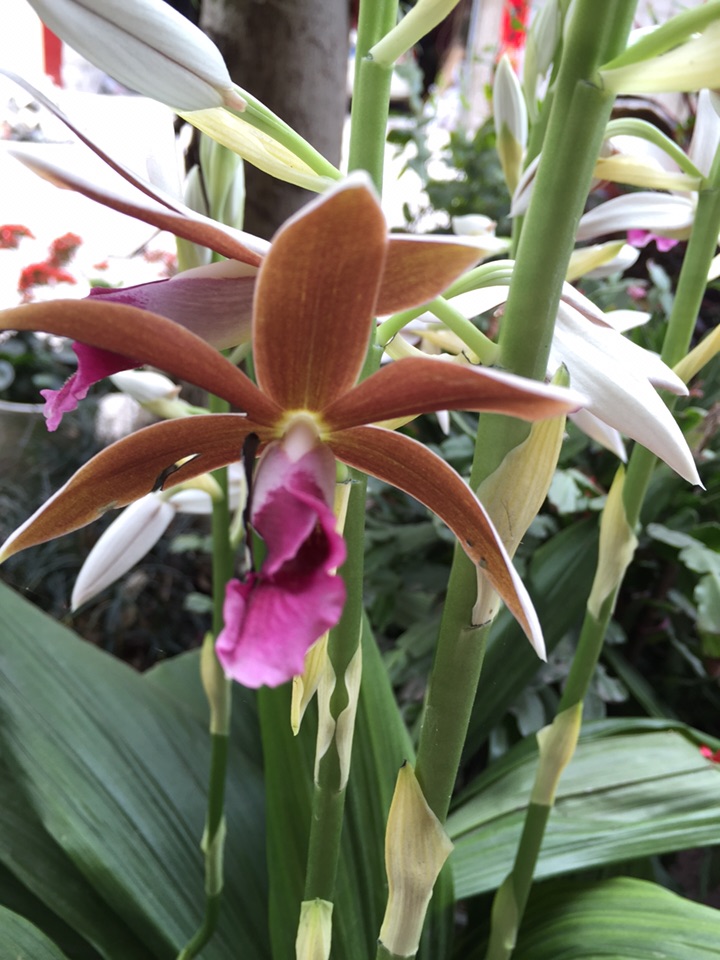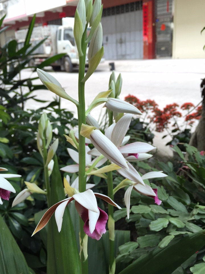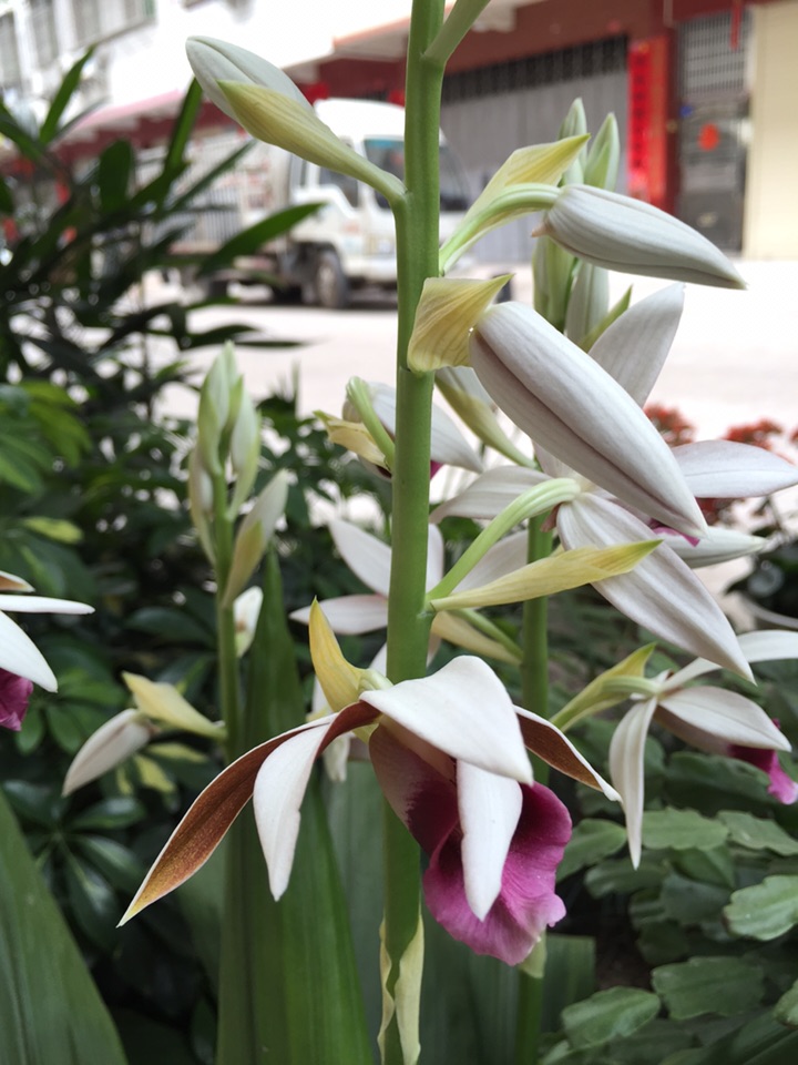 确定是初见,猜想是兰类。问一下主人,是鹤顶兰,好大气的兰!(20180405清明)