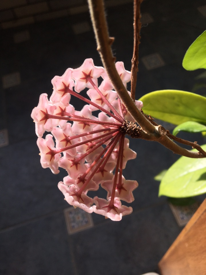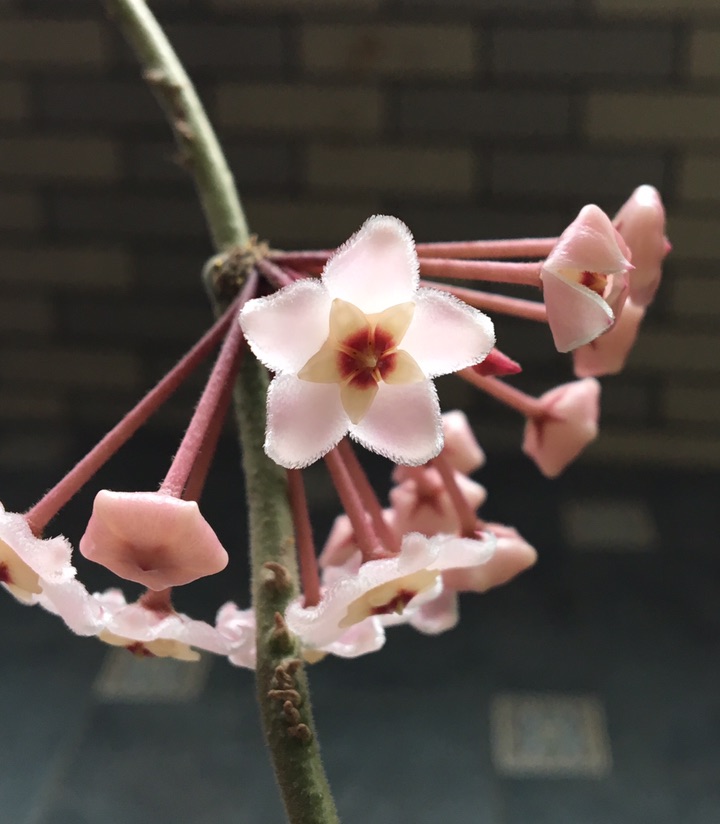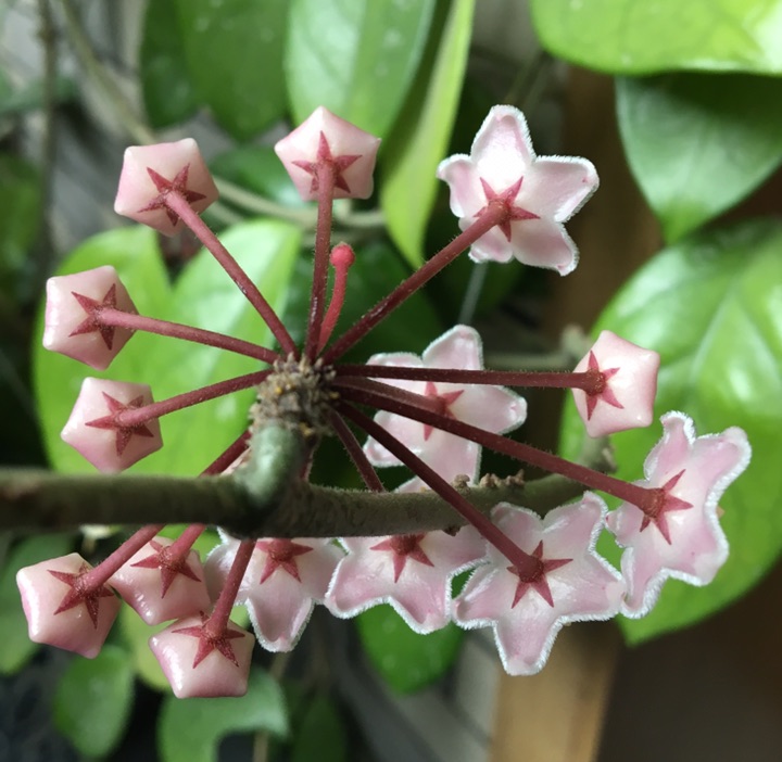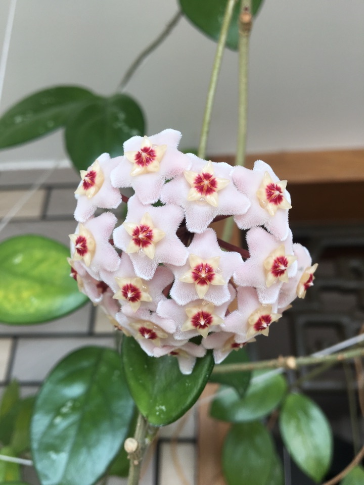 真是一棵有灵性的球兰,虽然在家里养了三年才开始开花,但由于家里暖气足,连素常不开花的冬季它也开花,并且在圣诞节、元旦和春节都能见到它的美丽影子。