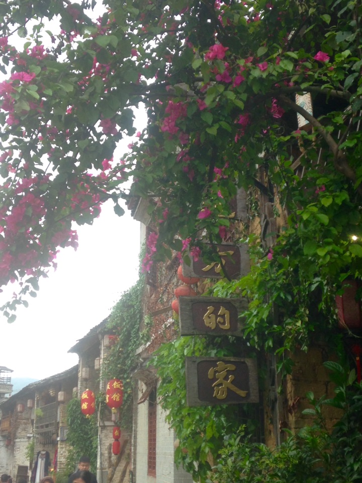 三角梅遮掩了天空,绿叶包裹着金黄的牌匾--远方的家,在远方,也有家的意样