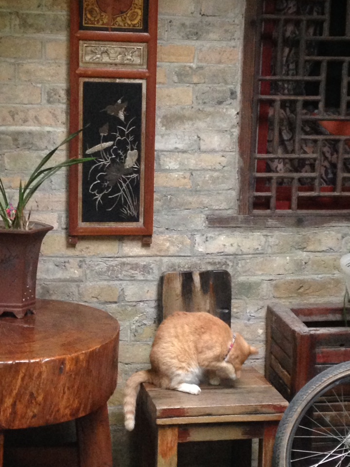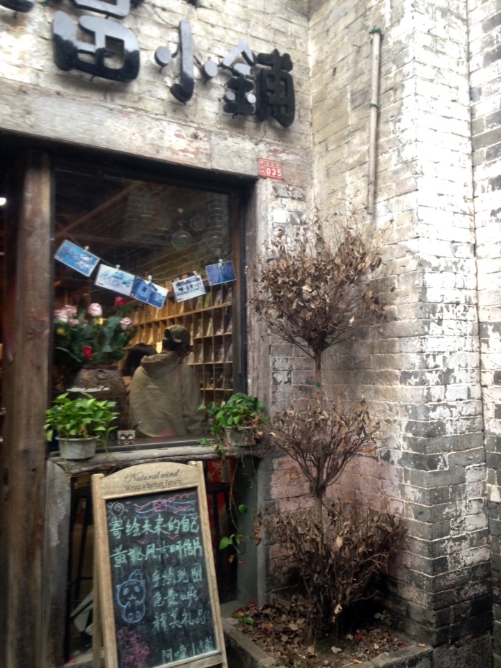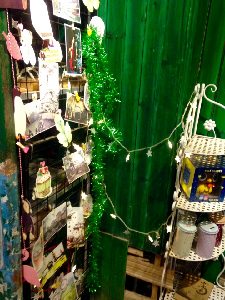 古色古香的小店里,红穗精致的圆形木灯,各类墨绘成的画作,藤蔓缠绕着石墙,橘猫的铃铛不住叮铃地响