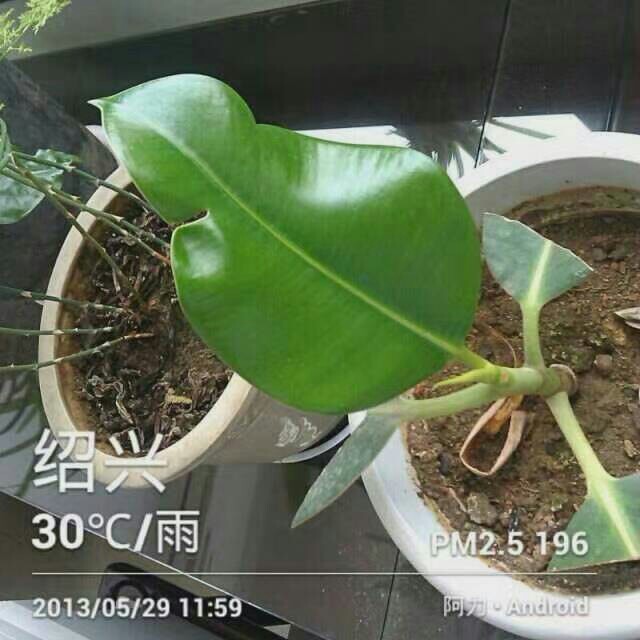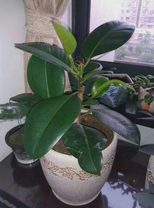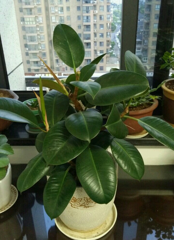 2013年春,在同事那里剪了橡皮树枝条,扦插,竟成活了。彼时只有一片叶子,我也没想过它最后会长成什么样子。