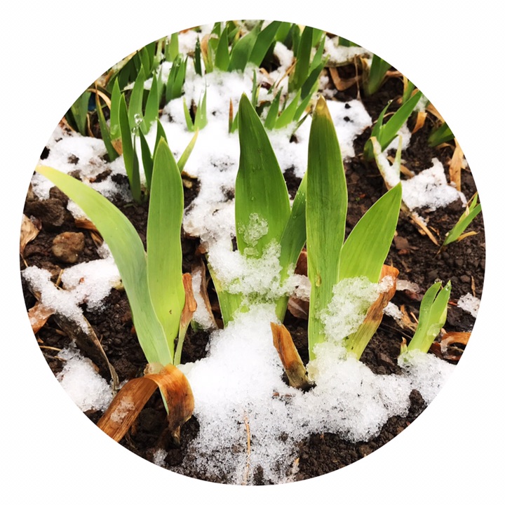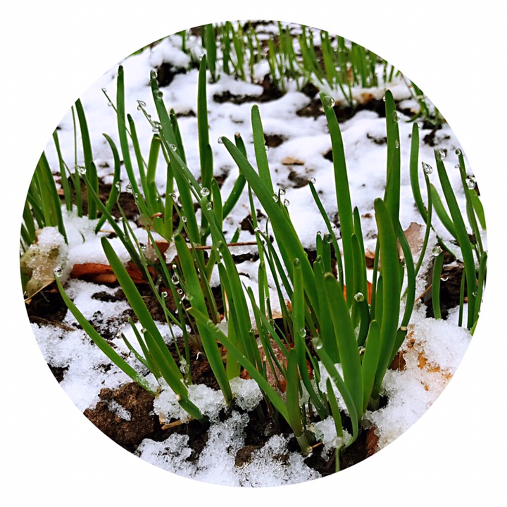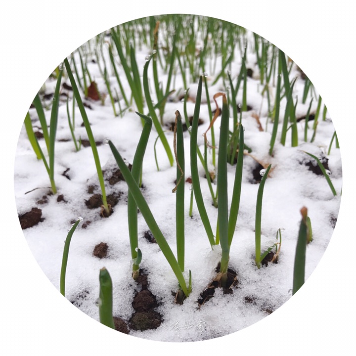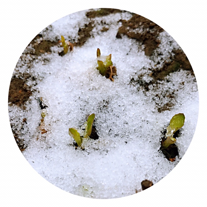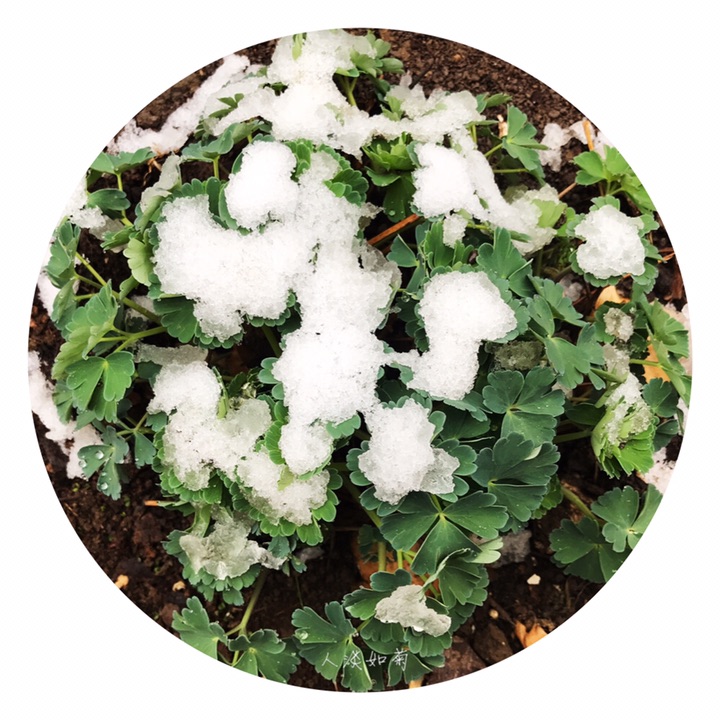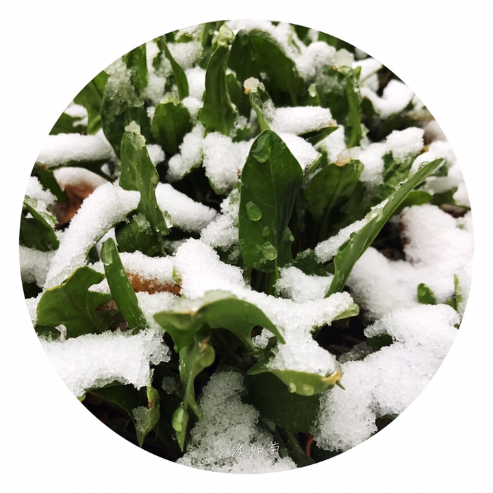 小院里,清明与雪相遇的绿植。