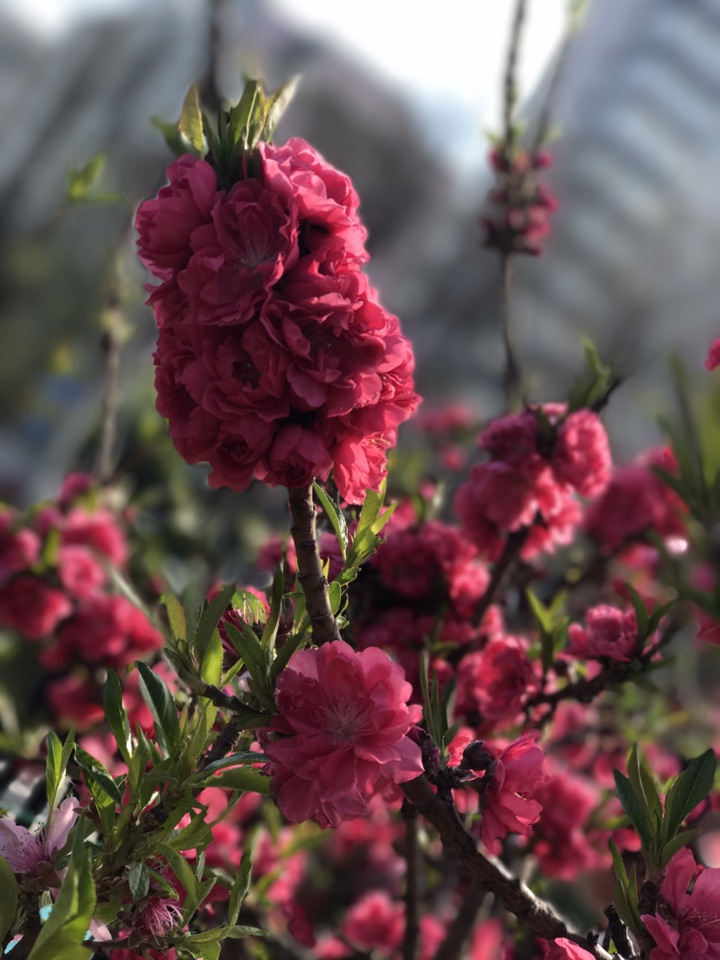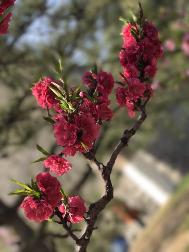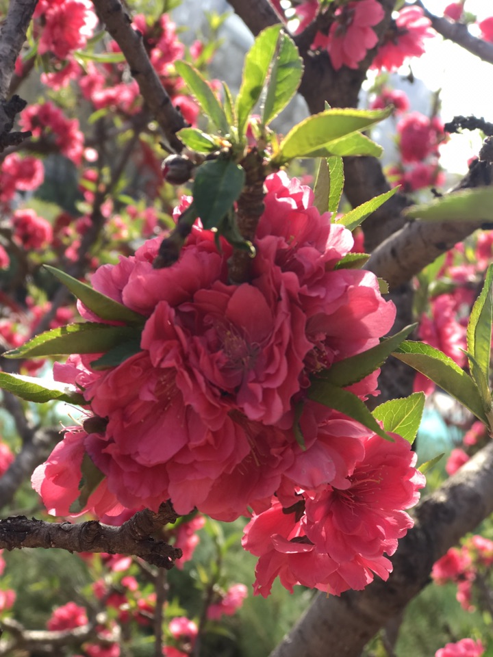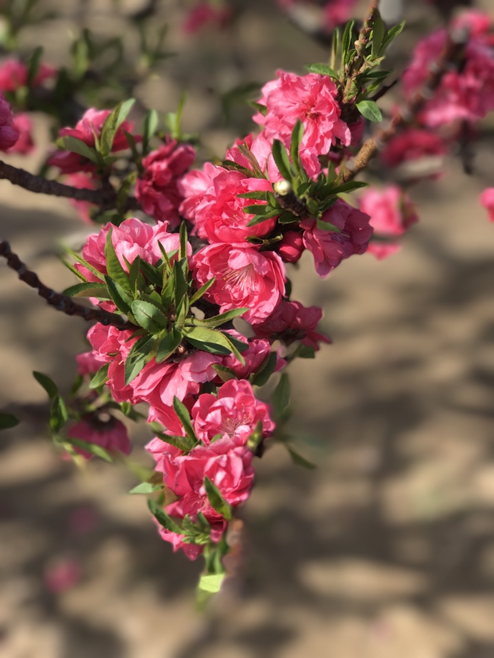 寿星桃为落叶小乔木,普通桃的变种。植株矮小,节间短,花芽密集。四月起为盛花期,花期半月左右。九月果实成熟。花重瓣或单瓣,蔷薇型,花蕾有深红色、粉红色、白色,花有红色、粉红色、白色。
