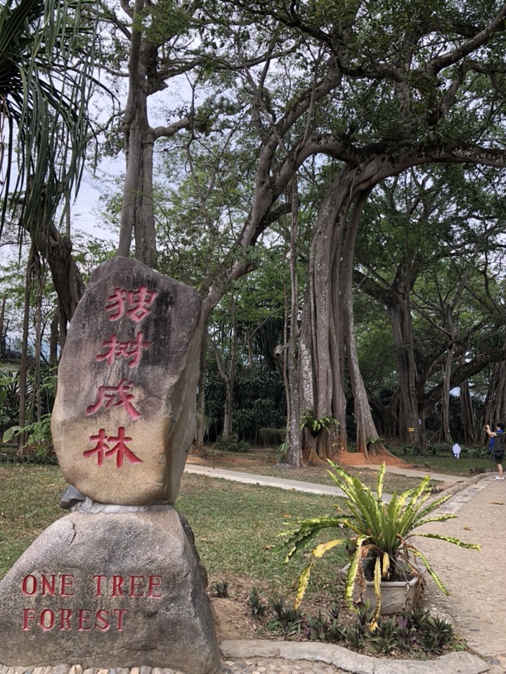 独树成林是这里的一大景观。它的奇特之处就在于一棵树盘根错节的枝干居然可以长成一片林子,还层层叠叠,相互倚靠