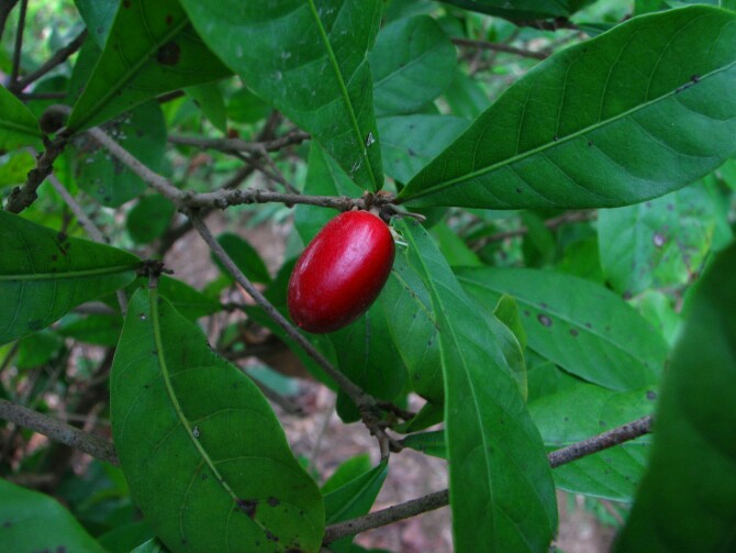 神秘果是一种椭圆形的红色果实,长不过2厘米,表面上看去没什么神秘的地方。你只要吃一点点神秘果,大约4小时之后,味觉就变了:酸的、苦的、辣的都变甜了。