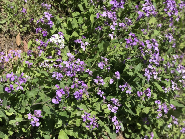 记得初识二月兰是在天坛公园,也是四五月份的时候吧。公园西门一进去便看到一片紫色的海洋如梦幻般的绽放着,一眼看不到尽头。以前也见过它,花型什么的很像油菜花,所以一直以为是观赏性油菜花什么的。拍了小视频上传朋友圈,然后有朋友跟我说这叫二月兰。这才知道,原来你叫二月兰呀。因在农历二月前后开始开蓝紫色的花,故称二月蓝(习惯称二月兰)