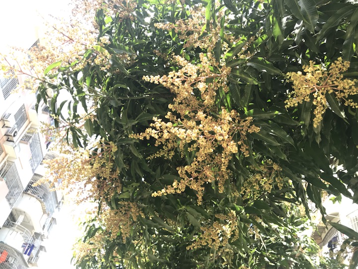 整个小区都笼在芒果花的甜香里,无论晚上散步还是白天经过,都有丝丝甜香沁入身心,这开满繁花的果树!