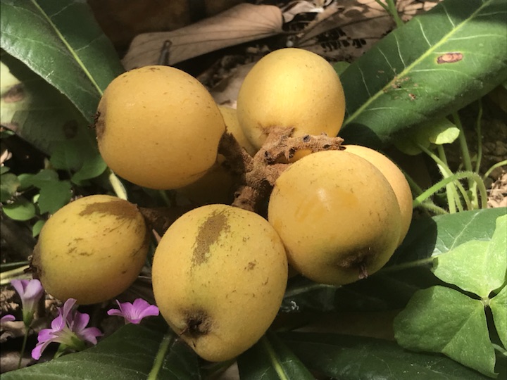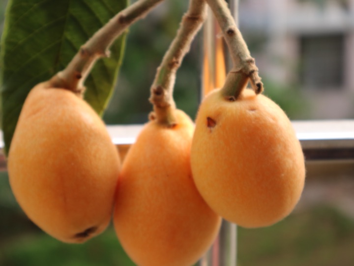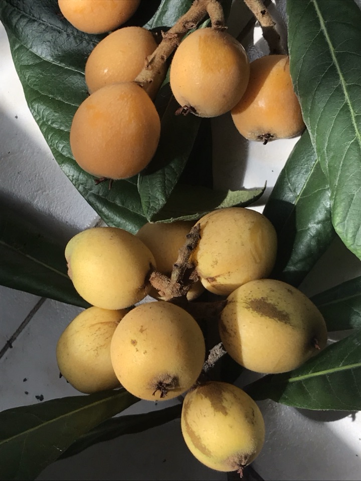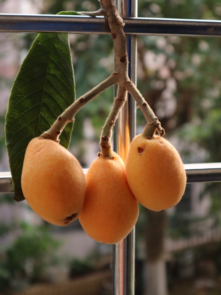 枇杷就要过季了,修枝的绿化工人采了一枝小区里的枇杷给我,虽不太甜,但也多汁可口不酸 。前面是市场上的枇杷,后面是庭前野长的枇杷