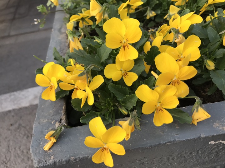 这是一种你现在在路边就常常能看到的小花,其花色丰富,花瓣有红、白、黄、紫、蓝等颜色,常有花斑,有时上瓣和下瓣呈不同颜色。虽说颜色艳丽纷杂,可还是一种被很多人忽视的小花。但是你可别小看了这不起眼的小花儿,它的来头可不小呢。最开始角堇长在北欧,比如在冰岛就有很多好看的角堇,西班牙比利牛斯是角堇的故乡。角堇喜冷凉环境它的花期从秋天可以一直延续到春末,而耐热性较强的角堇,其花期可一直延续到7月上旬。你看这小巧玲珑的花型再搭配上明艳高贵的黄角堇简直就是爱的小天使好么。角堇作为一种不仅可以观赏,还可以吃的小可爱,因为颜色丰富又可以长期供应,特别适合沙拉和摆盘。