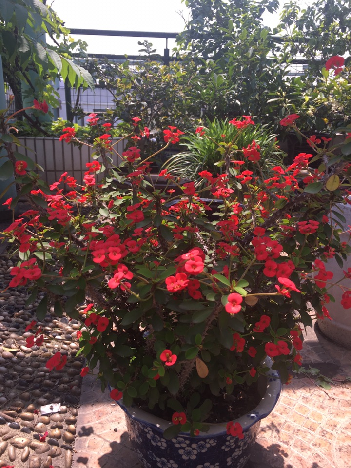1.原本一年四季花开不断的虎刺梅只是低调地开着花,今年开得太张扬了,红火啊!不达成一个亿的小目标实在是对不起它花开得如此灿烂。