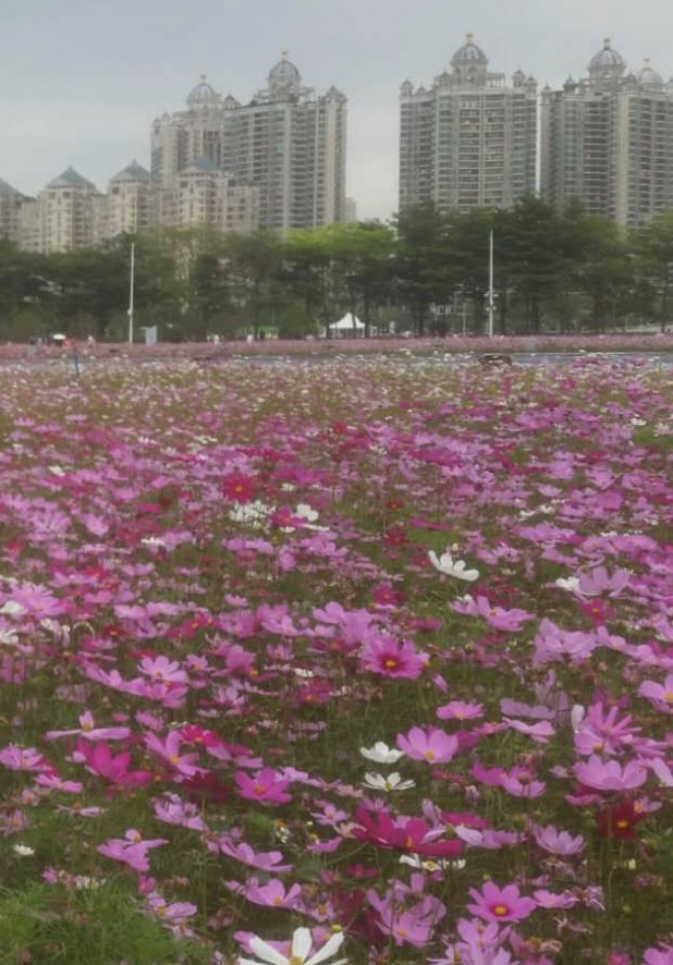 昨日经过海心沙时,望见秋英竟开成一片海洋。看似不起眼的朵朵小花,红色、粉色、白色,连成一大片,忽就惊艳了路人。