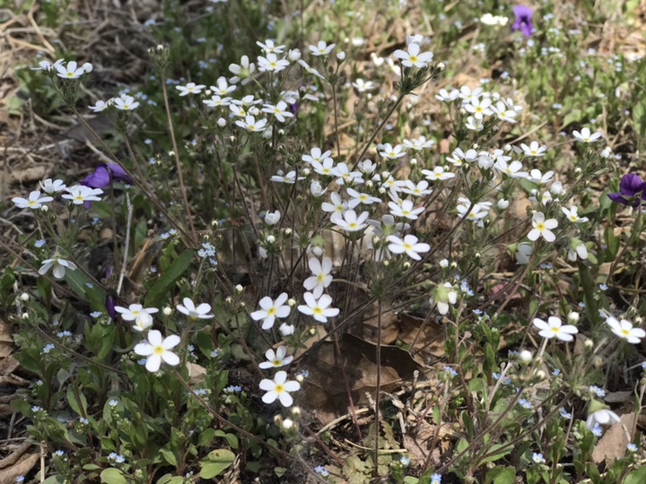 点地梅别名:喉咙草、白花珍珠草、清明花、佛顶珠、天星草。报春花科点地梅属,点地梅属是报春花科的第二大属,物种数量仅次于报春花属,全世界有大约110个种,其中大半分布于中国西南,因为喜马拉雅山区是这个属的发源地。为一年生或多年生、矮小草本,开白色小花,精致可爱。