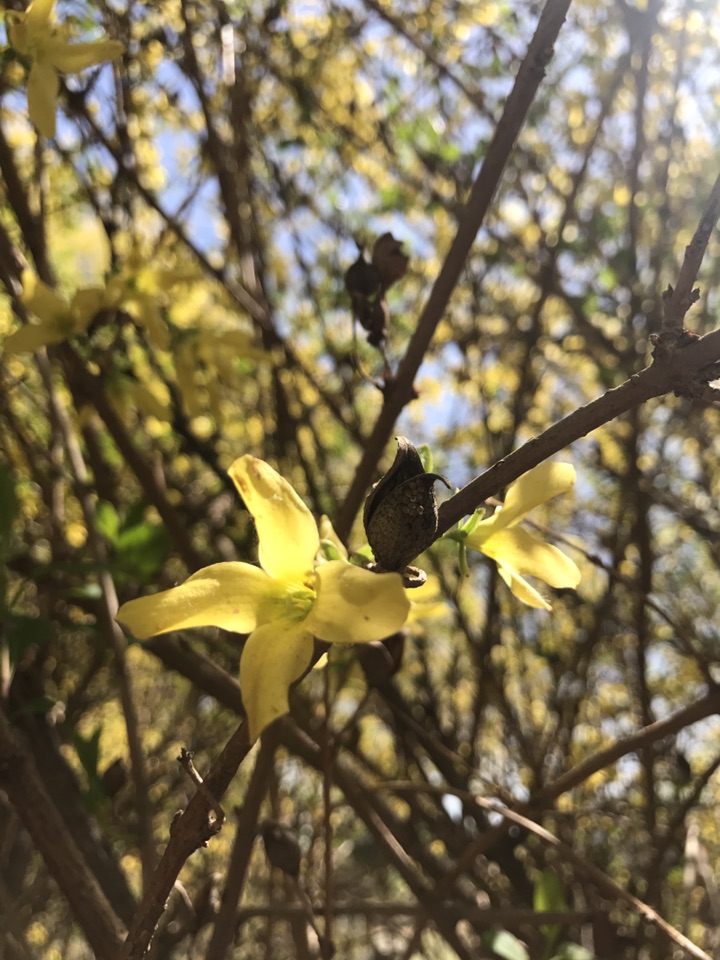 连翘的花期真的好长,这都一个多月了还能看到那抹暖黄在春日里摇曳生辉