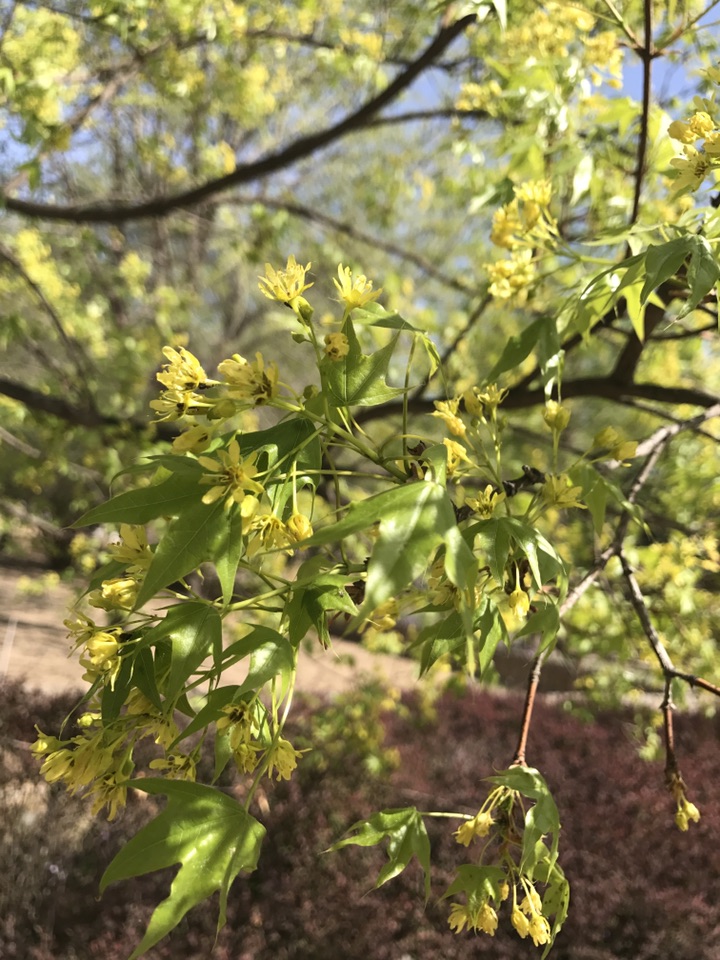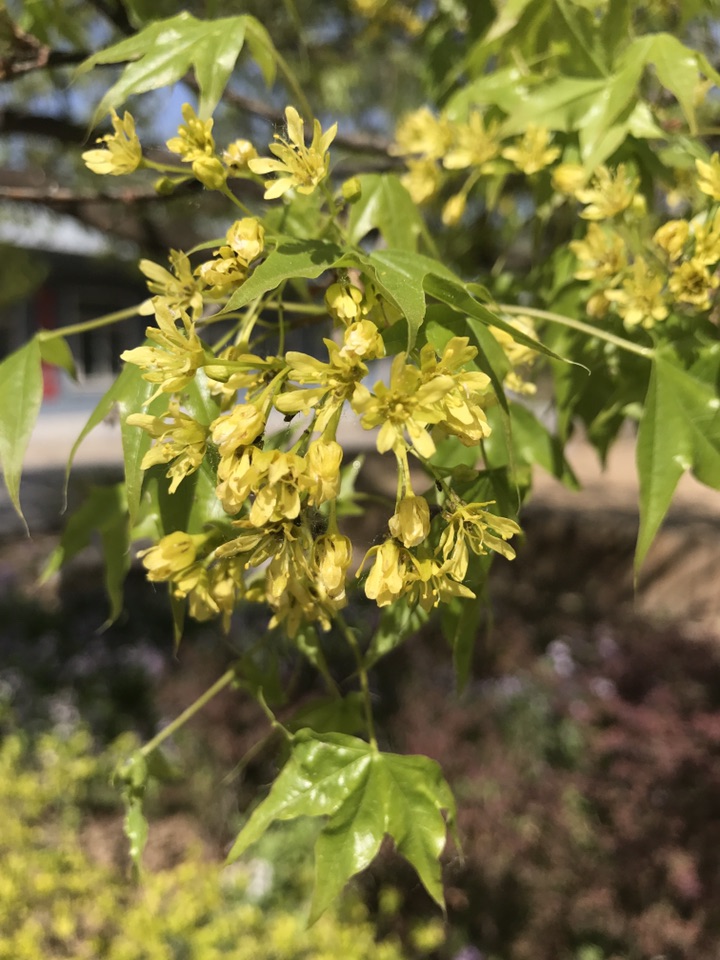 “枫”,槭属植物的统称。 五角枫(学名色木槭)、元宝槭,不易区分。 五角枫,落叶大乔木,15~20米 元宝槭,落叶乔木,5~10米 个人是已放弃😔。 我们这里,行道、园林绿化树种为元宝槭, 它的花叶,一般能轻松拍到。