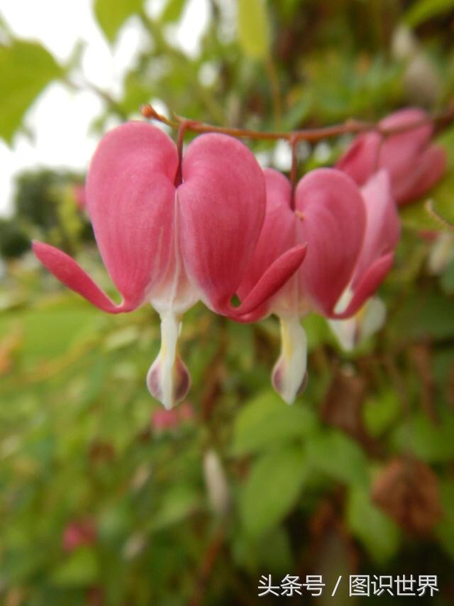 此花也叫荷包花,铃儿花,因为叶子和牡丹花相似,才被称作荷包牡丹花,也是非常好的园林花卉,全身都有医用价值。