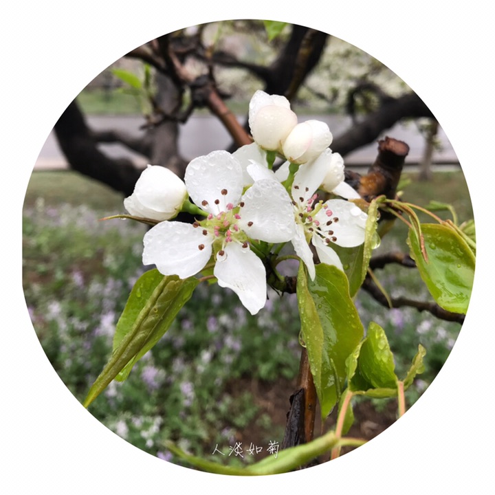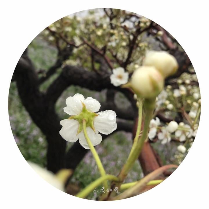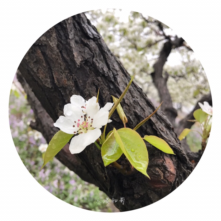 雨中玉皇山梨园别有一番滋味,漫步在一团紫气的二月蓝甬路上,脑海里浮现的是三十年前喜欢的那首《梨花泪》……