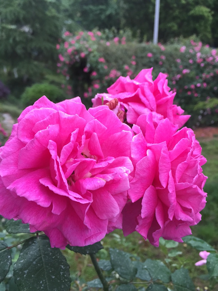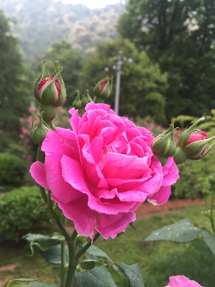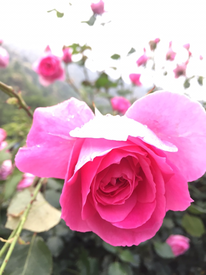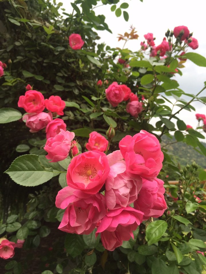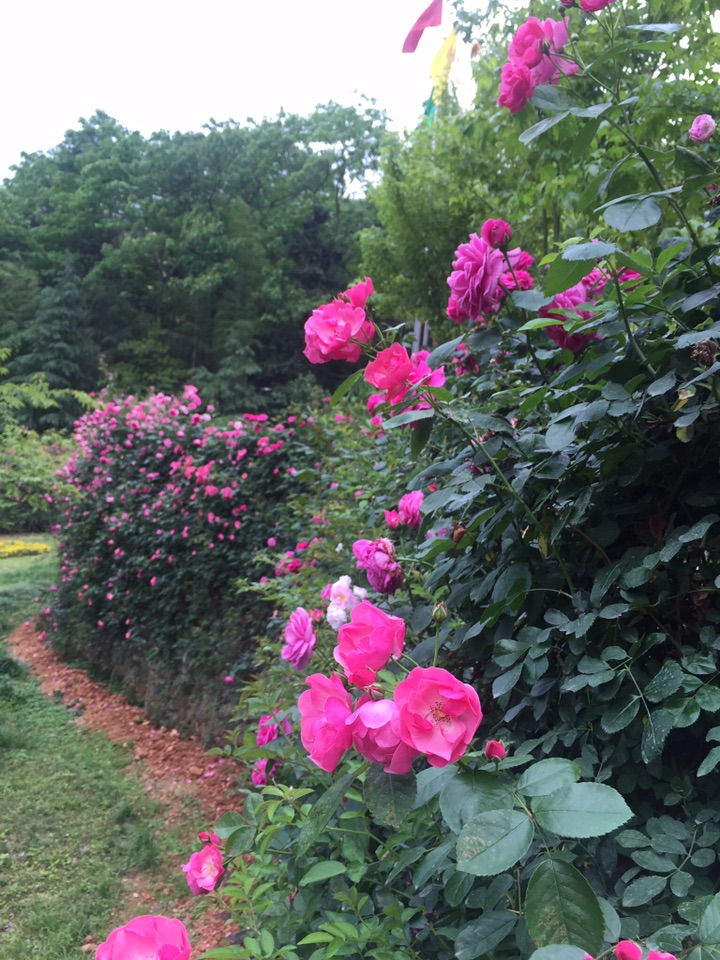 这是玫瑰,月季,还是蔷薇?待心情稍微平静了一些,我上形色查了一下,给出的是"月季"。刚好景区负责人经过,听他介绍说这些花儿是月季和蔷薇的杂交品种,景区花了几年时间才培育成功。