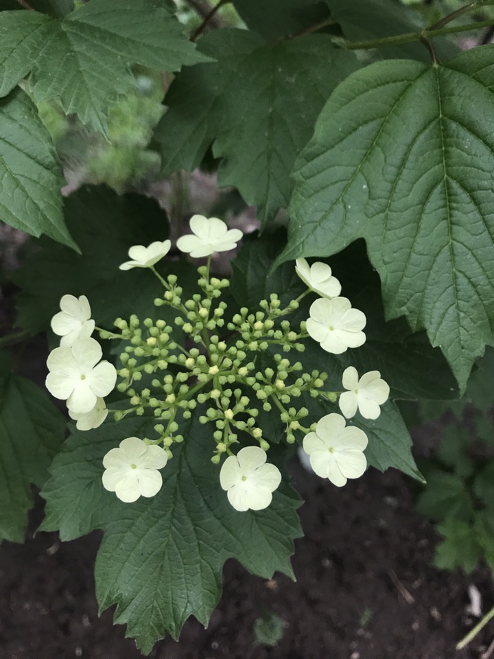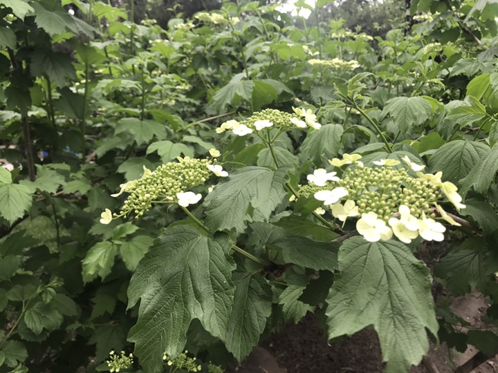 鸡树条也叫天目琼花是忍冬科,荚蒾属欧洲荚蒾的原变型,落叶灌木植物。 鸡树条荚蒾的复伞形花序很特别,边花(周围一圈的花)白色很大,非常漂亮但却不能结实为不孕的辐射花,心花(中央的小花)貌不惊人却能结出累累红果,两种类型的花使其春可观花、秋可观果,在园林中广为应用。鸡树条荚蒾嫩枝、叶、果供药用。种子可榨油,供制肥皂和润滑油。