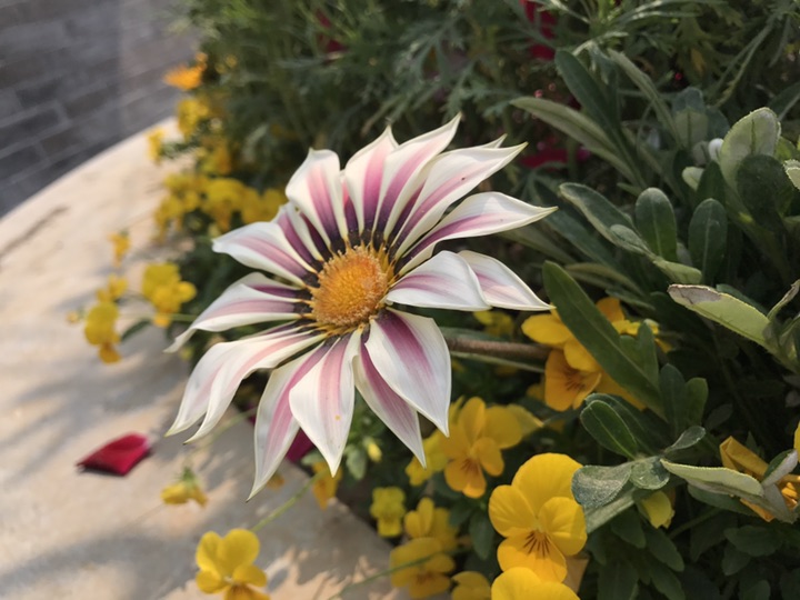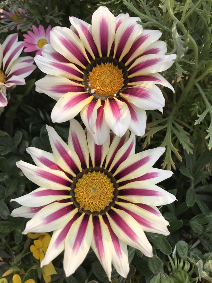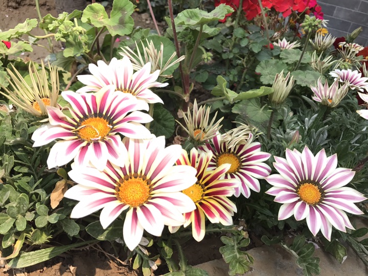 勋章菊也称作勋章花、非洲太阳花是菊科勋章菊属多年生宿根草本植物,原产于南非和莫桑比克,性喜温暖向阳,因其花形奇特、花色丰富,其花心有深色眼斑,形似勋章而得名。勋章菊舌状花瓣纹新奇,绚丽多彩,花瓣亮泽,花朵迎着太阳开放,至日落后闭合,可持续10余天,具有浓厚的野趣,是园林中常见的盆栽花卉和花坛用花。