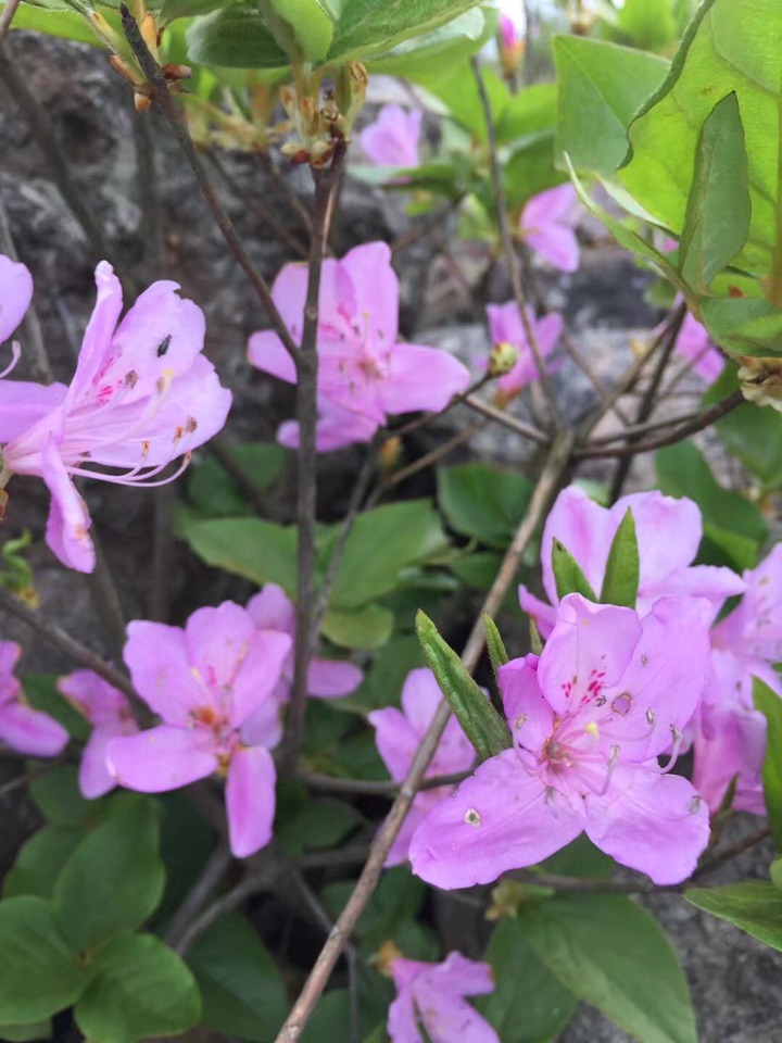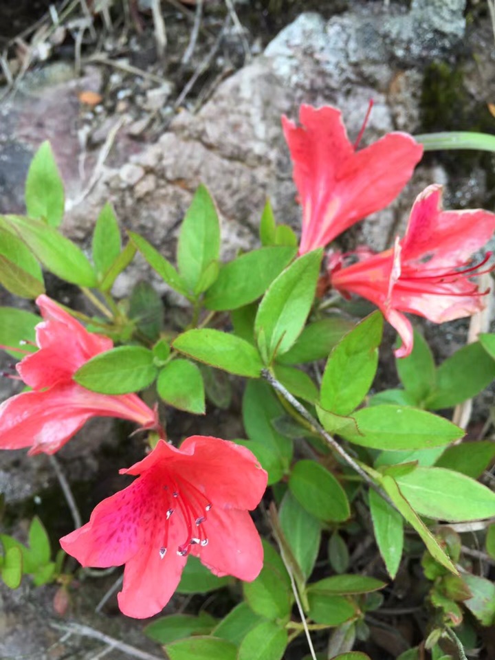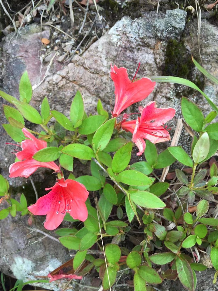 这些杜鹃充满野性,有些甚至长在石头缝里,仍然开出灿烂的花儿。或许,在它们身上,才更有名花的风范。