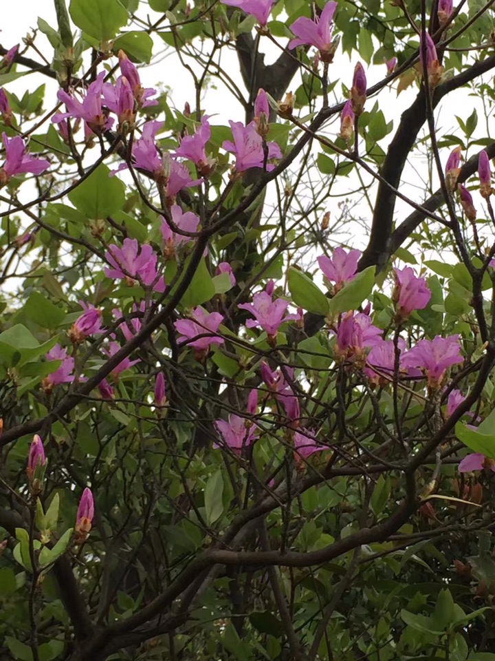 杜鹃是中国的名花,有美丽的传说故事,深的国人喜爱。现在无论是公园、广场,甚至路边的花带里,都可以看到它的芳影,前段时间帖子里也有很多。但野外山林里的山杜鹃我却是第一次亲见。