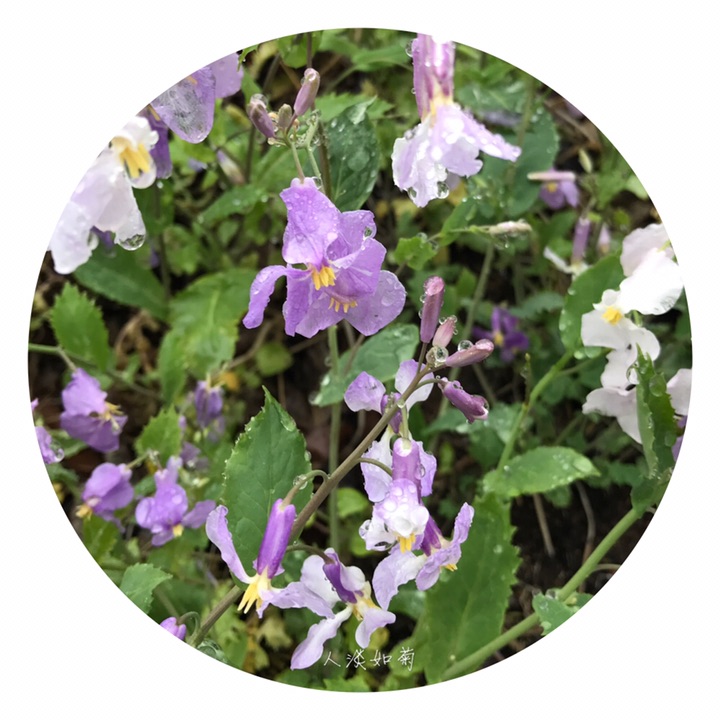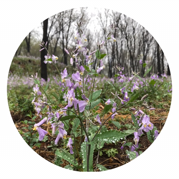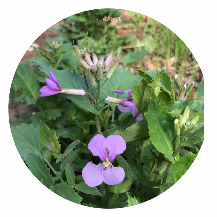 诸葛菜,十字花科诸葛菜属,一年或二年生草本。因农历二月前后开始开蓝紫色花,故称二月蓝,常用名二月兰。生长于平原、山地、路旁、地边。对土壤光照等条件要求较低,耐寒旱,生命力顽强。