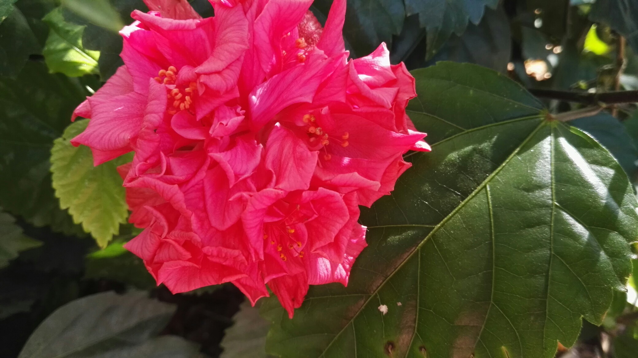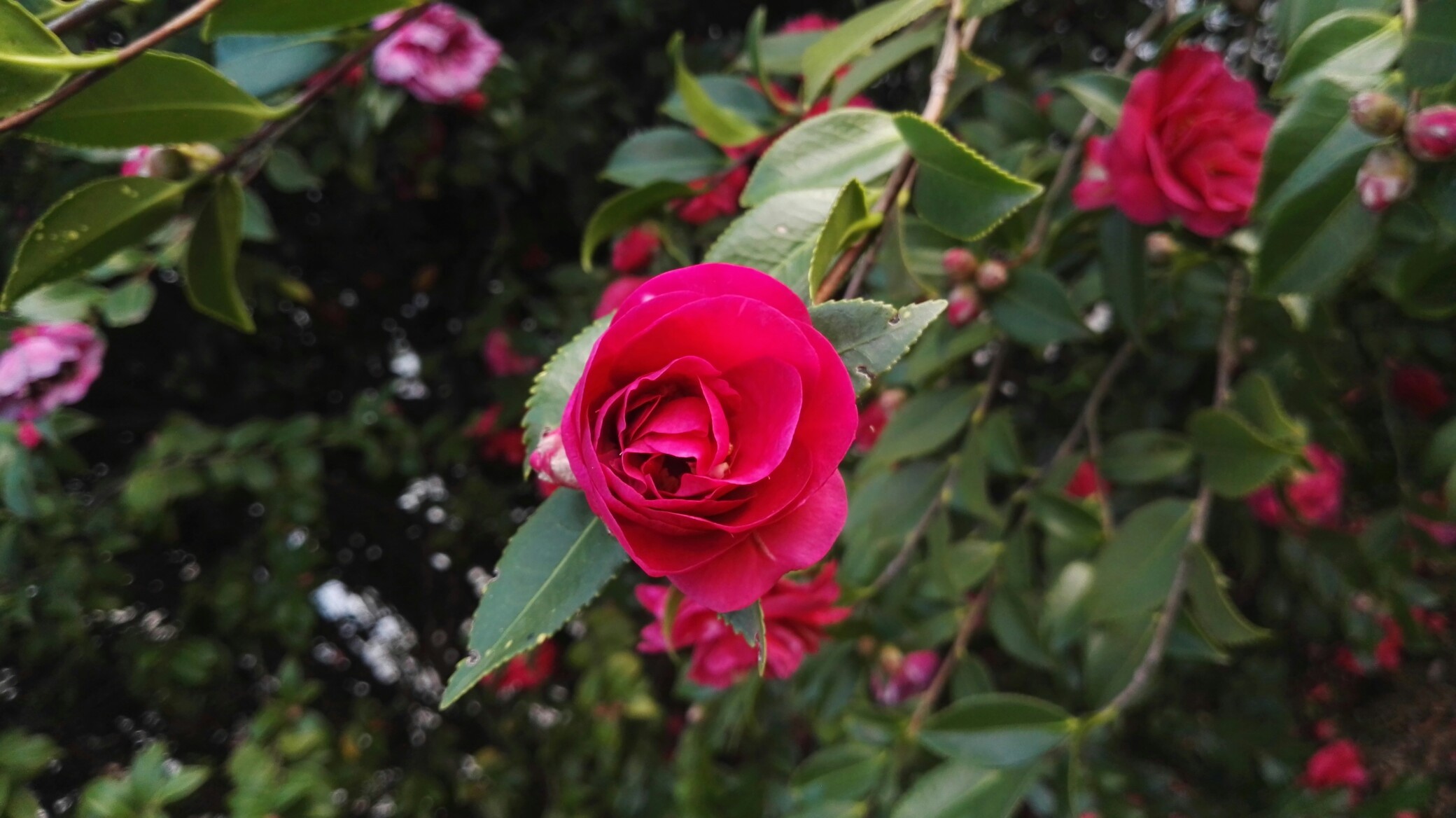 (光线原因,这朵花其实是粉色偏红的,拍出来倒像是大红色了。)
