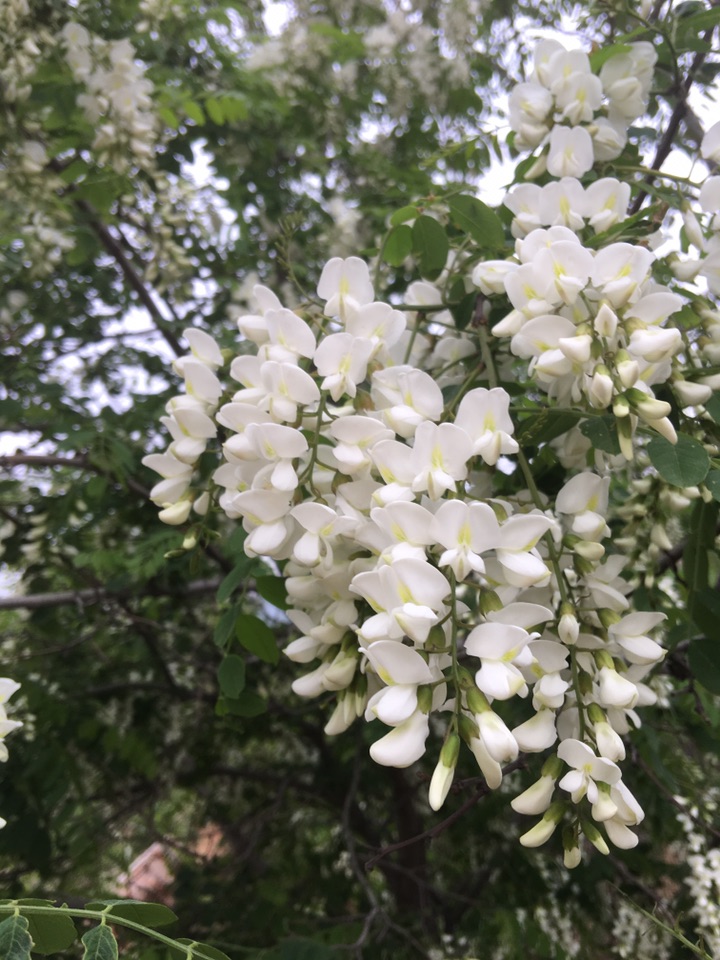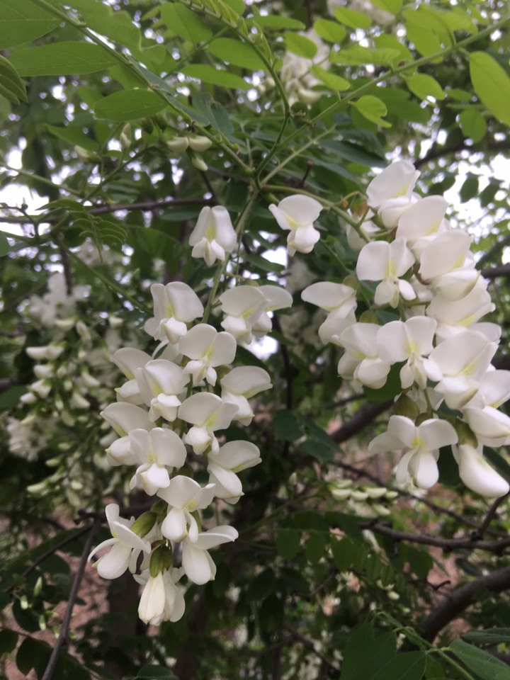 那天下班走到单位北门口,突然闻到了熟悉的槐花香,抬头一看,原来路边的几棵大刺槐要开花了!