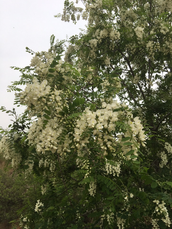 有句话说,念念不忘,必有回响。果不其然,周末爬山时不经意间就遇见了一棵平易近人的刺槐树,可以随便采槐花啊,随便采!