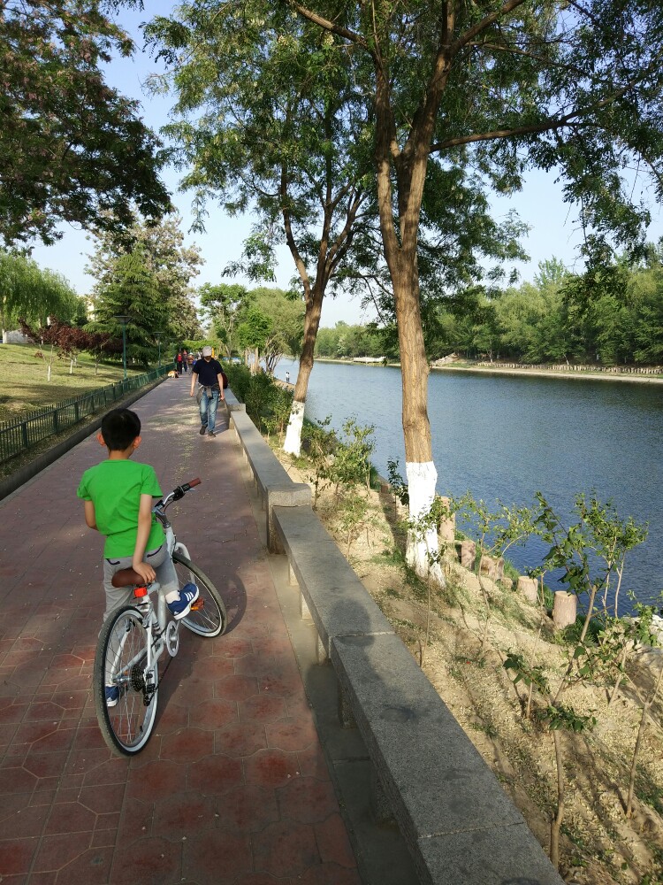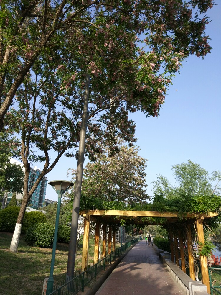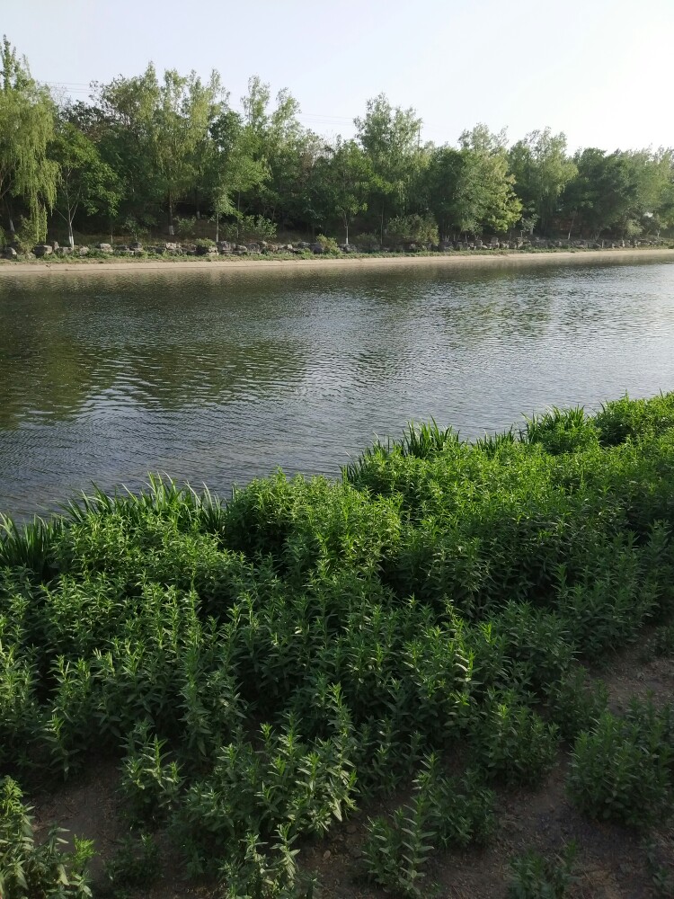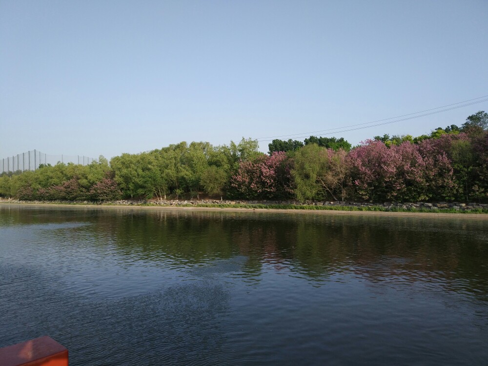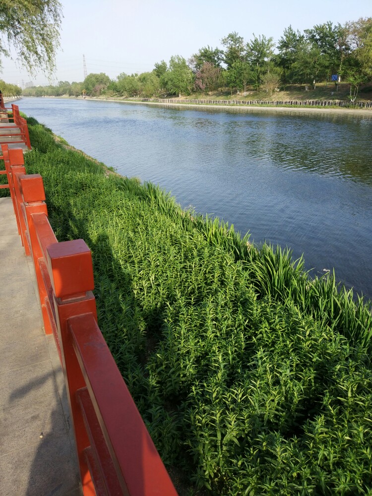 清河河水污染经过治理,已绿树成荫,花草遍地。