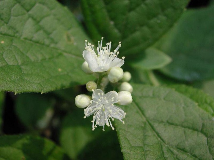 叶: 叶互生;叶柄长3-5mm;叶片膜质或薄纸质,阔倒卵形、椭圆状倒卵形或卵形,长3-11cm,宽2-4cm,朱端急尖或渐尖,基部阔楔形或近圆形,边缘有细尖锯齿,叶面无毛或有乘毛,叶背通常有柔毛或仅脉上有柔毛;中脉在叶面凹下,侧脉在叶面平坦或微凸起,每边4-8条。