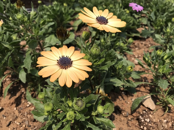 非洲万寿菊为多年生宿根草本原产南非,矮生种株高20-30 cm,茎绿色,头状花序,多数簇生成伞房状,有白、粉、红、紫红、蓝、紫等色,别称臭芙蓉、万寿灯、蜂窝菊、臭菊花、蝎子菊