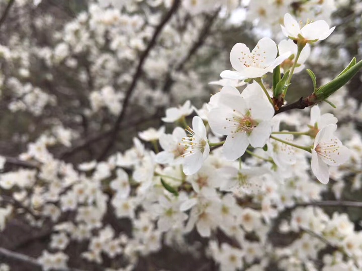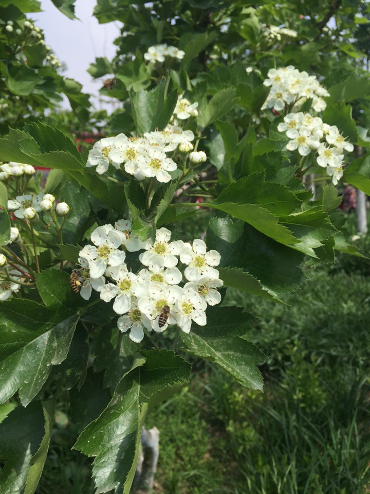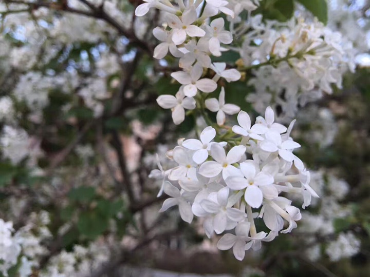 :顺序梨花,白丁香,山楂,后两个都是大滨菊