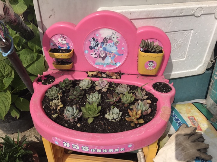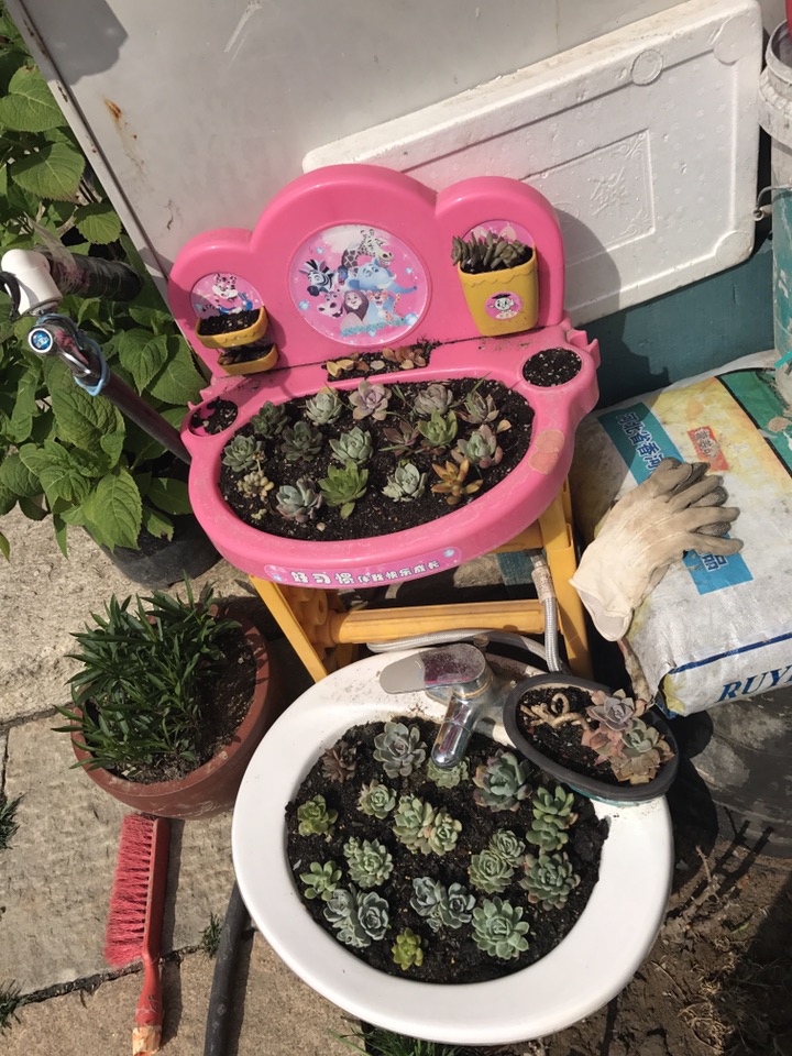 喜欢沿着蜿蜒曲折的三里河漫步,这里的一切都是喜闻乐见的,听水声潺潺观鱼儿畅游赏花红柳绿闻鸟语花香。胡同里少了人很少,可以随着自己的心情随意逛。有爱花的人家摆了一门口一窗台的植物,盆里边的多是肉肉植物,精致可爱极了。他也真够物尽其用的,小孩的学步车,废弃的水池子在他的眼里都成了非常好的花盆。