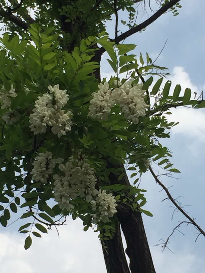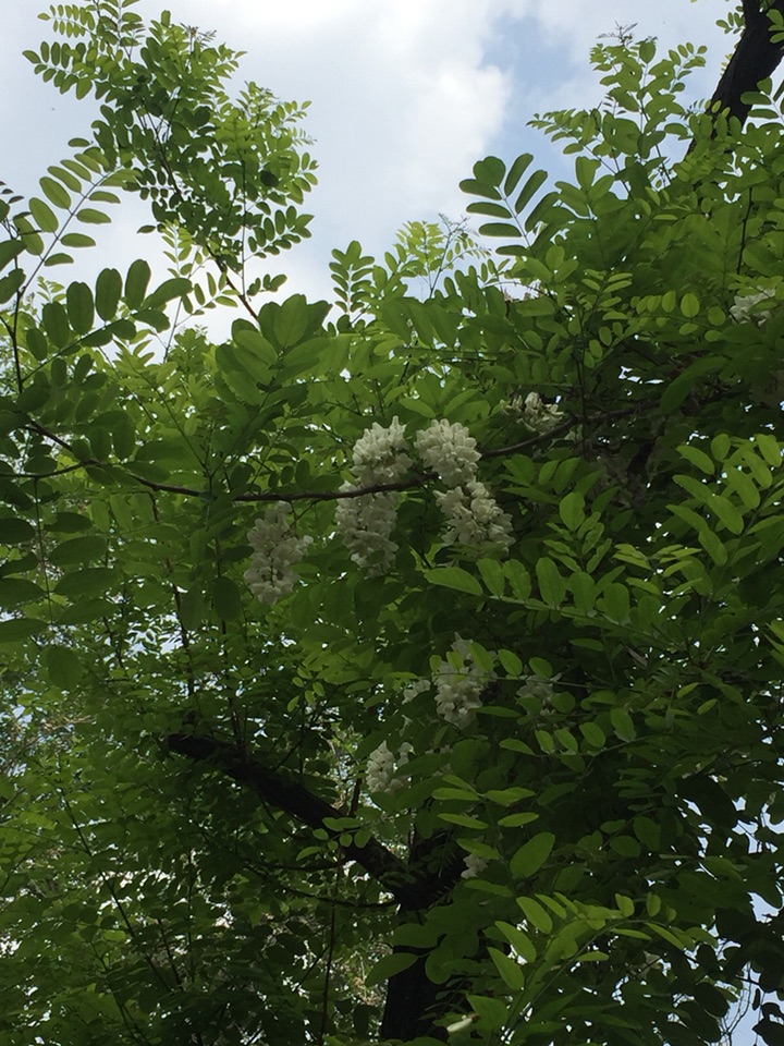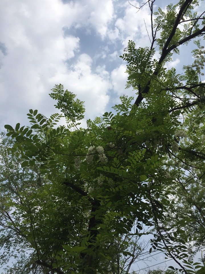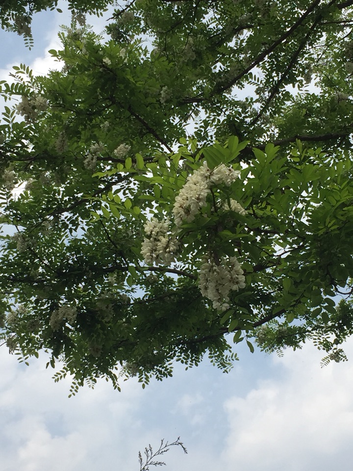 洋槐树高高的,花香弥漫,空气中都有甜甜的味道。