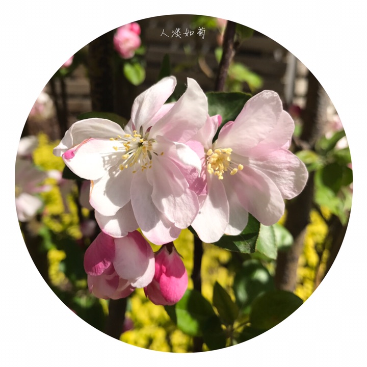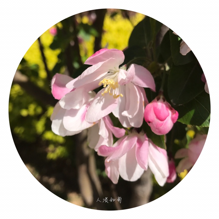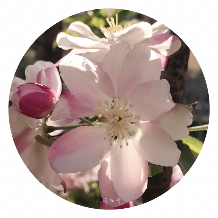 海棠花开娇艳动人,但一般的海棠花无香味,只有西府海棠既香且艳,是海棠中的上品。其花未开时,花蕾红艳,似胭脂点点,开后则渐变粉红,有如晓天明霞。