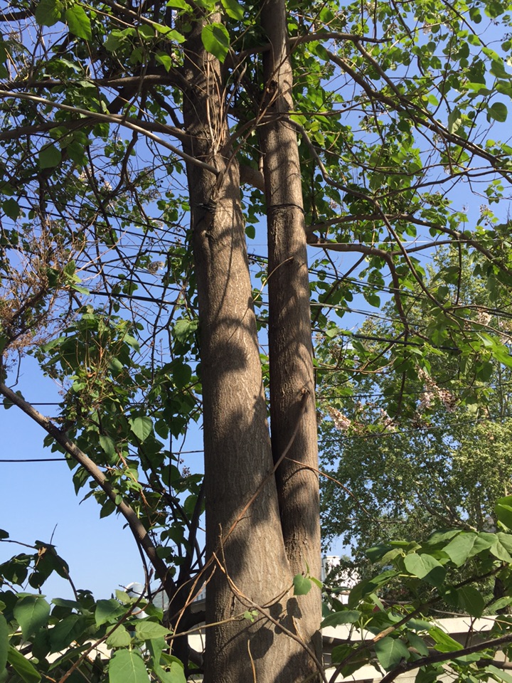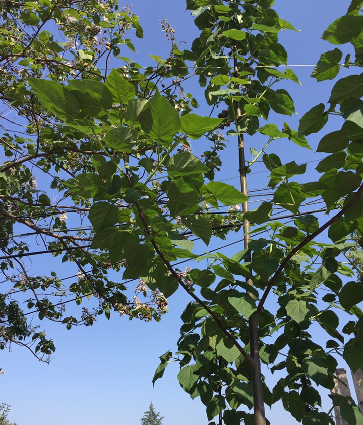 我的家乡在西北边陲的一个小县城,那时没有多少景观树,行道树基本都是泡桐,我家的小院上学的路边以及爸爸的单位,整个泡桐树占据了我所行走的世界。记得小学的时候收集树籽我就是爸爸帮我攒的泡桐籽。那时候觉得泡桐浑身是宝,硕大的叶子在下雨天可以当伞挡在头顶,经常喝泡桐花里面甜的像蜜一样的花水,紫色的花朵被我们拿来吹喇叭,夏天在泡桐树下乘凉游戏!种种件件关于泡桐的儿时回忆都是那么的真实。最难忘的就是泡桐花特殊的气味,独特的芬芳,带点粗犷,恬淡、隔着很远就能闻到。记得有一次和朋友探讨,泡桐树现在越来越少了,朋友说泡桐树不结实树干空心,很容易腐朽大风吹倒容易引发次生灾害,所以现在路边的行道树基本都是樱花高杆女贞之类了。听完这段话我的心一阵子惆怅,是啊,现在很难找到一条都是泡桐的街道,桐花万里丹山路这样的情景我只有想象,泡桐树犹如一位已经隐世的高人,完成了他的历史使命安静的退出了。